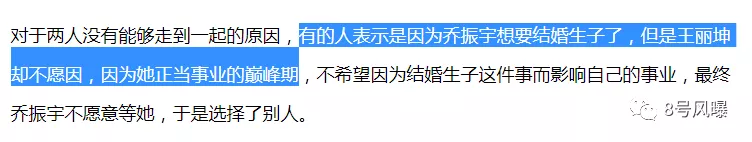 变的却是分手理由,和恋爱8年乔振宇的分手,据说是男方想结婚,而王丽坤想发展事业。