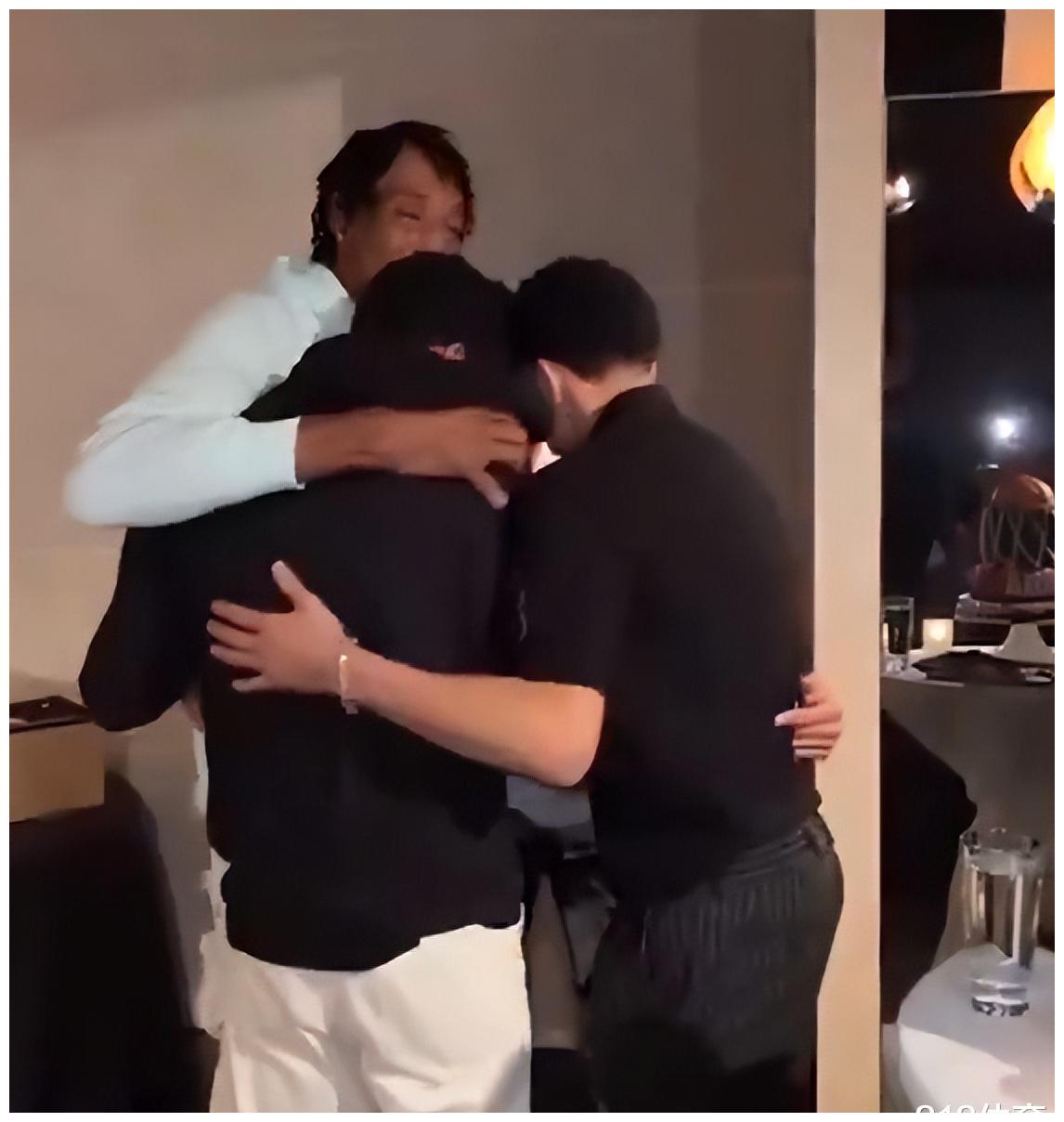 老皮蓬将3个儿子抱在怀中,不知道在说些什么,泪流满面。值得一提的是,皮蓬当年曾经搭档迈克尔-乔丹为公牛夺得6个总冠军,是NBA历史传奇球星。