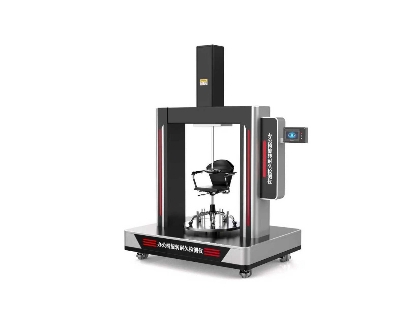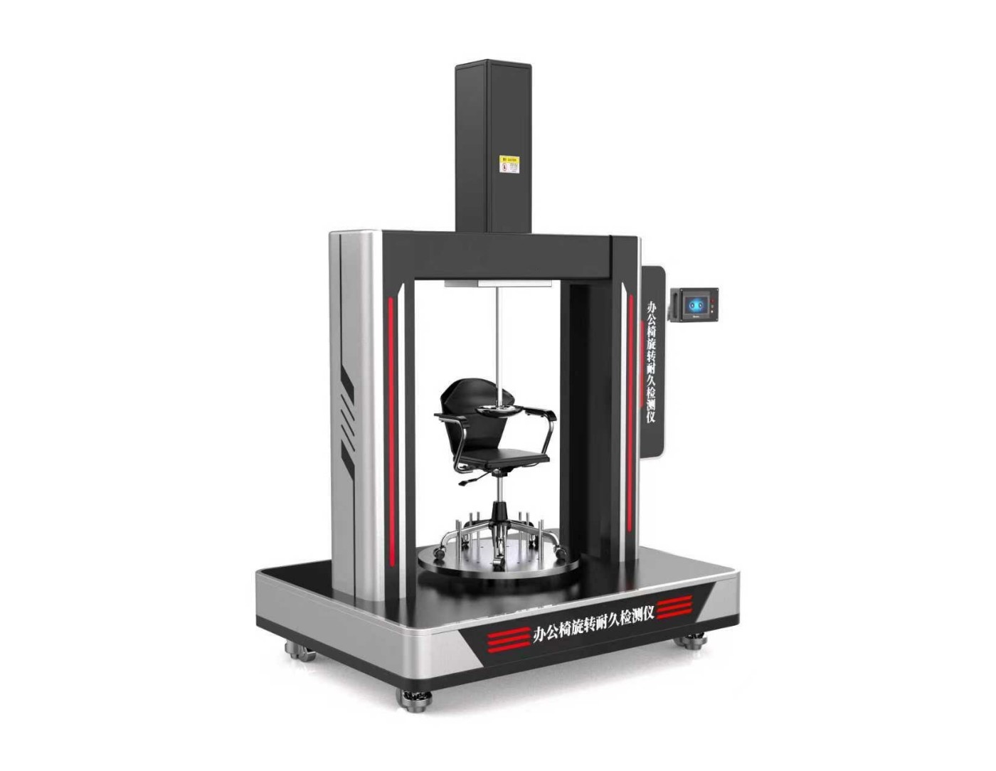 设备通过固定办公椅脚架于试验圆盘上,对座面施加特定负荷,并设定旋转速度、角度及循环次数,模拟用户日常使用中的旋转动作。