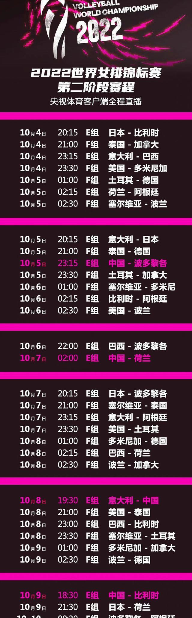 是的,继央视全程直播了女排世锦赛第一阶段的全部比赛之后,根据最新的预告,央视又将全程直播女排世锦赛16强复赛,而笔者也将具体的赛程展示如图,大家记得收藏。