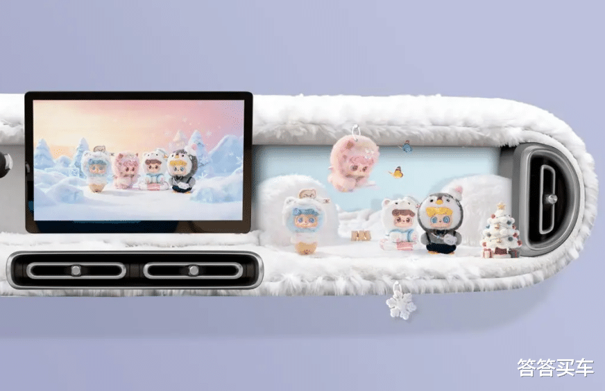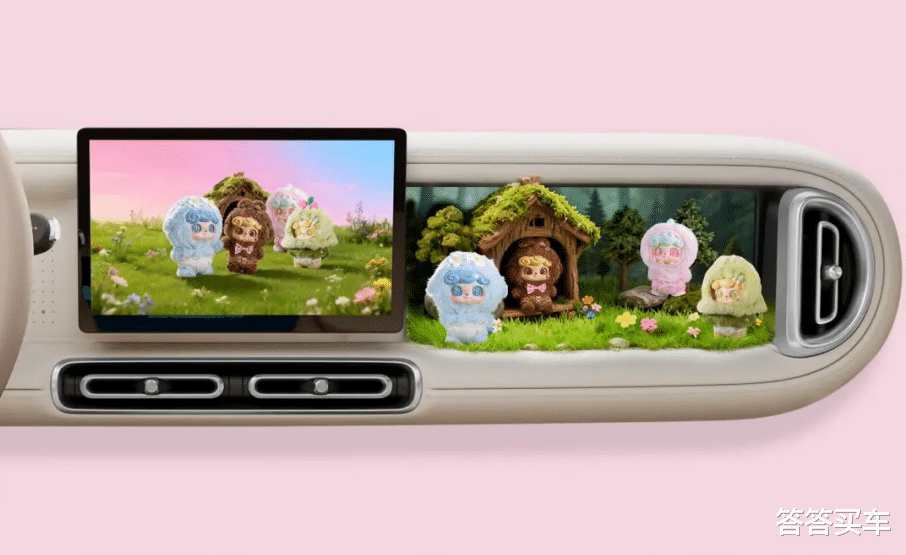 新车在副驾前方提供了专属“潮玩展台”,此空间可随时更换摆件、调整主题,用户可根据爱好更换造景内容。