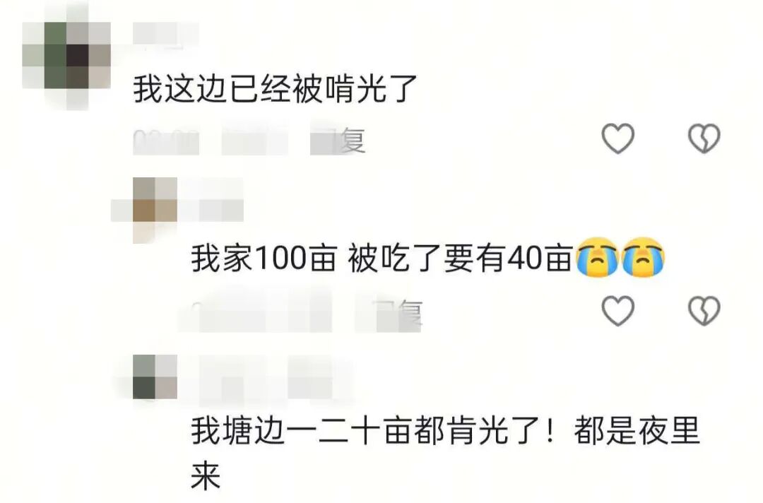多个视频显示有麋鹿在田间,当地人展示被破坏作物,称受到一定影响,使用喇叭、无人机对麋鹿进行驱离的方式出现。部分农户称很生气,但因麋鹿是保护动物,且多在夜间出现,难以防备。