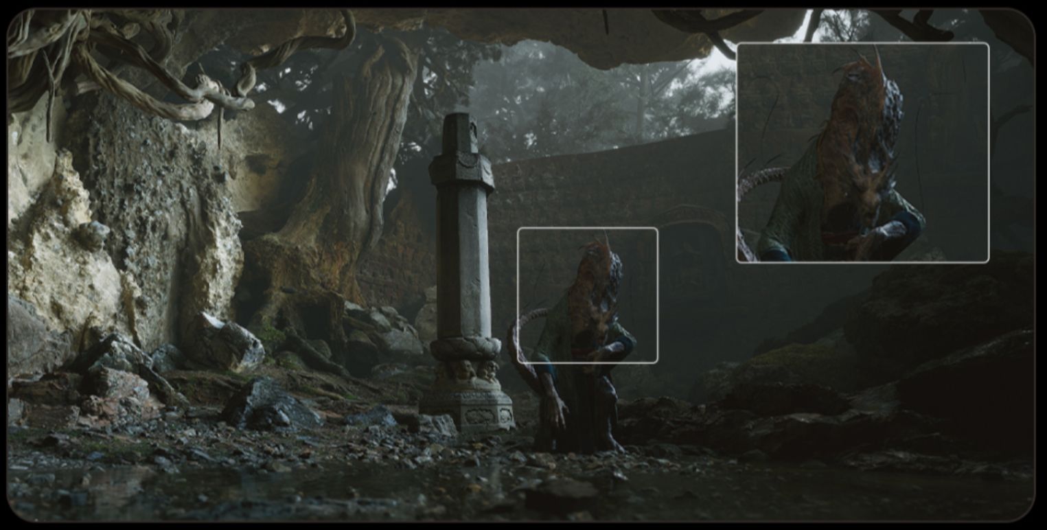 对于动作游戏玩家来说,卡顿和拖影堪称“致命伤”,但海信E8Q Pro直接甩出原生4K 170Hz+动态330Hz的王炸组合。配合极光瞬影引擎,画面响应时间压缩至5.88ms——这比人类触觉神经的反射极限还要快!当天命人的金箍棒上下翻飞时,丝毫看不到拖影,连二郎神飘逸的秀发都纤毫毕现。