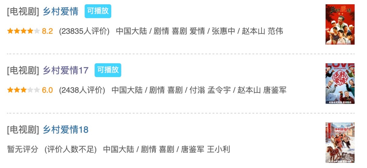 从剧情品质来看,《乡村爱情》早已从“源于生活、高于生活”变成了“脱离生活、胡编乱造”。