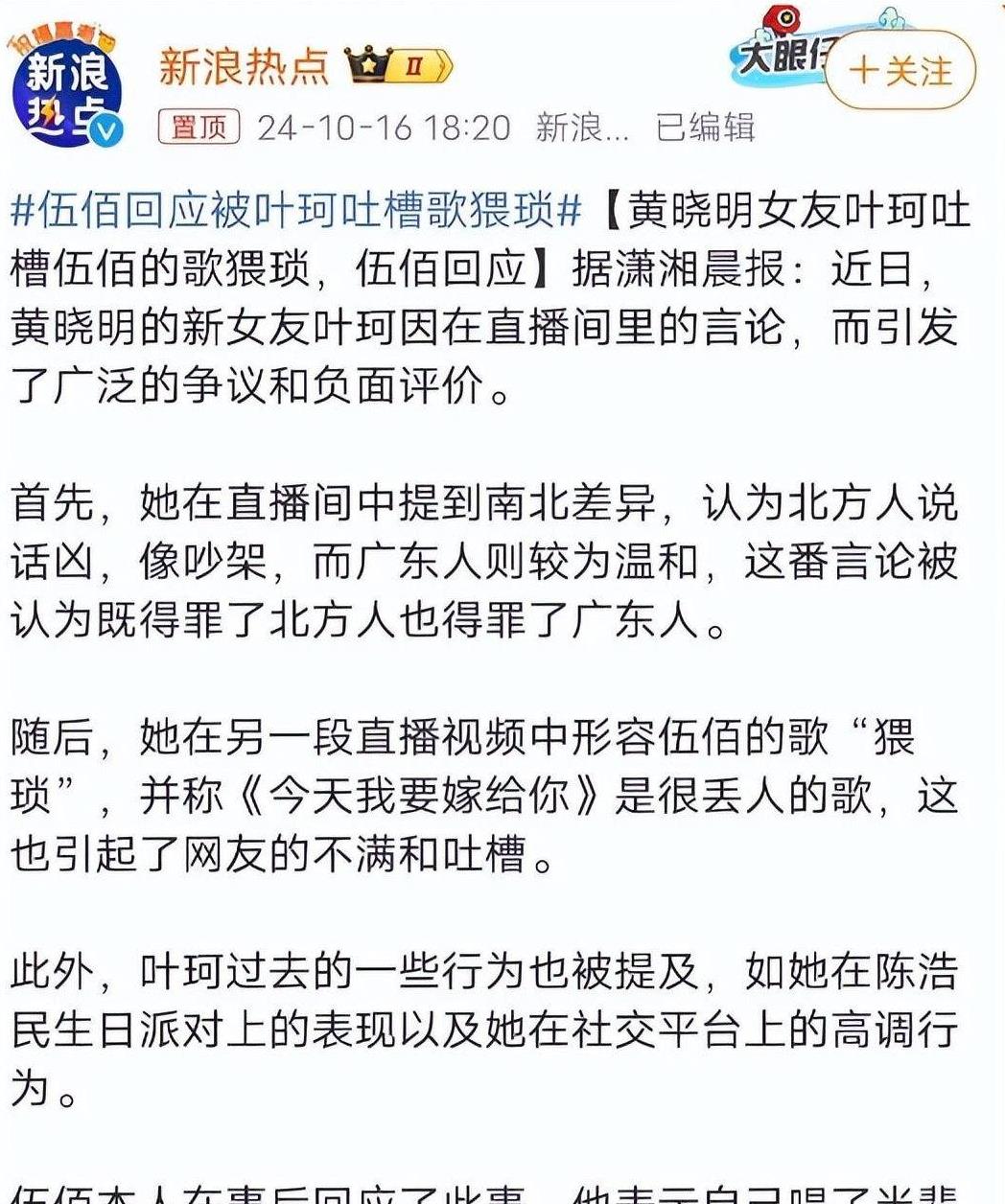 让我们从叶珂的一次直播故事开始,这名受到与黄晓明恋爱话题影响的女演员,在直播中不经意地对伍佰的歌曲“猥琐”发表了评论”。当这些建议被公之于众,网络迅速掀起了巨大的反响和讨论。