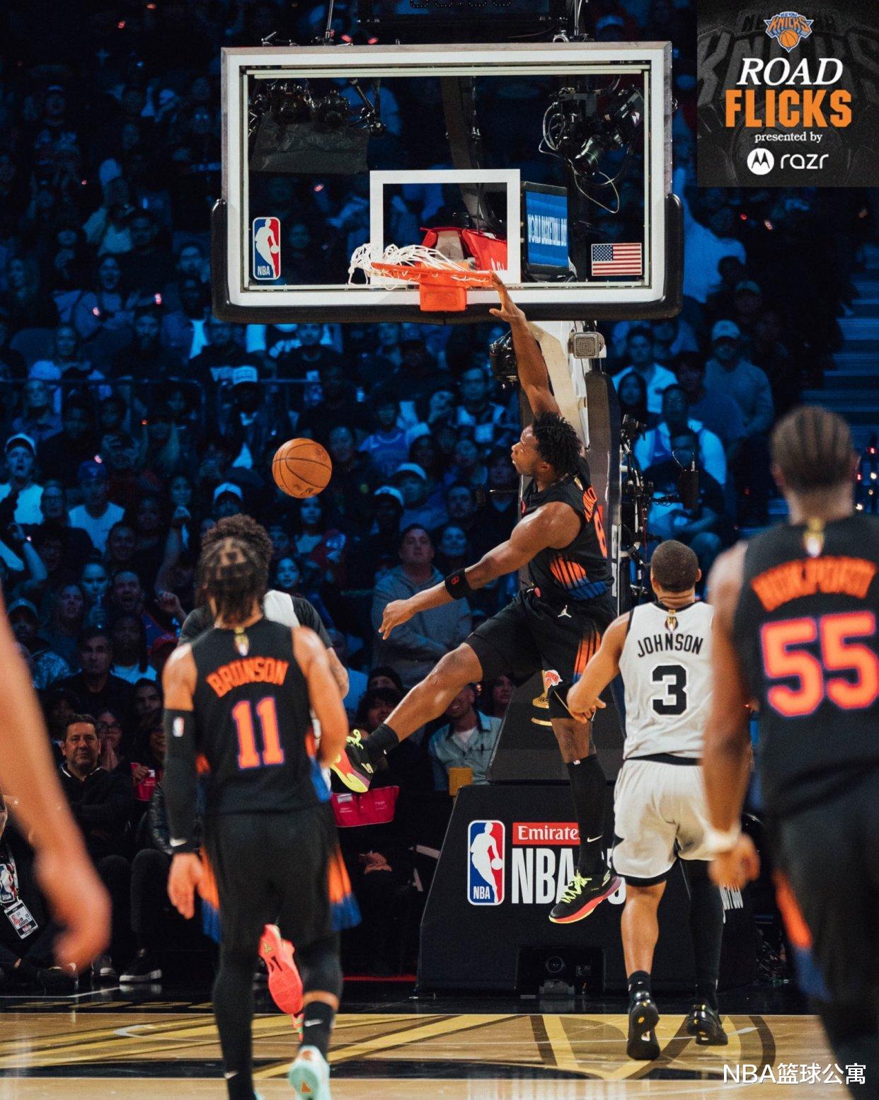 下半场,阿奴诺比在攻防两端的表现也值得称赞。阿奴诺比抢下了全场第三多的篮板球,帮助尼克斯在篮板数据上以59比42碾压对手。此外,阿奴诺比的4个前场篮板高居全队第二。在阿奴诺比的积极拼抢之下,尼克斯的进攻篮板也以23比18压制对手。