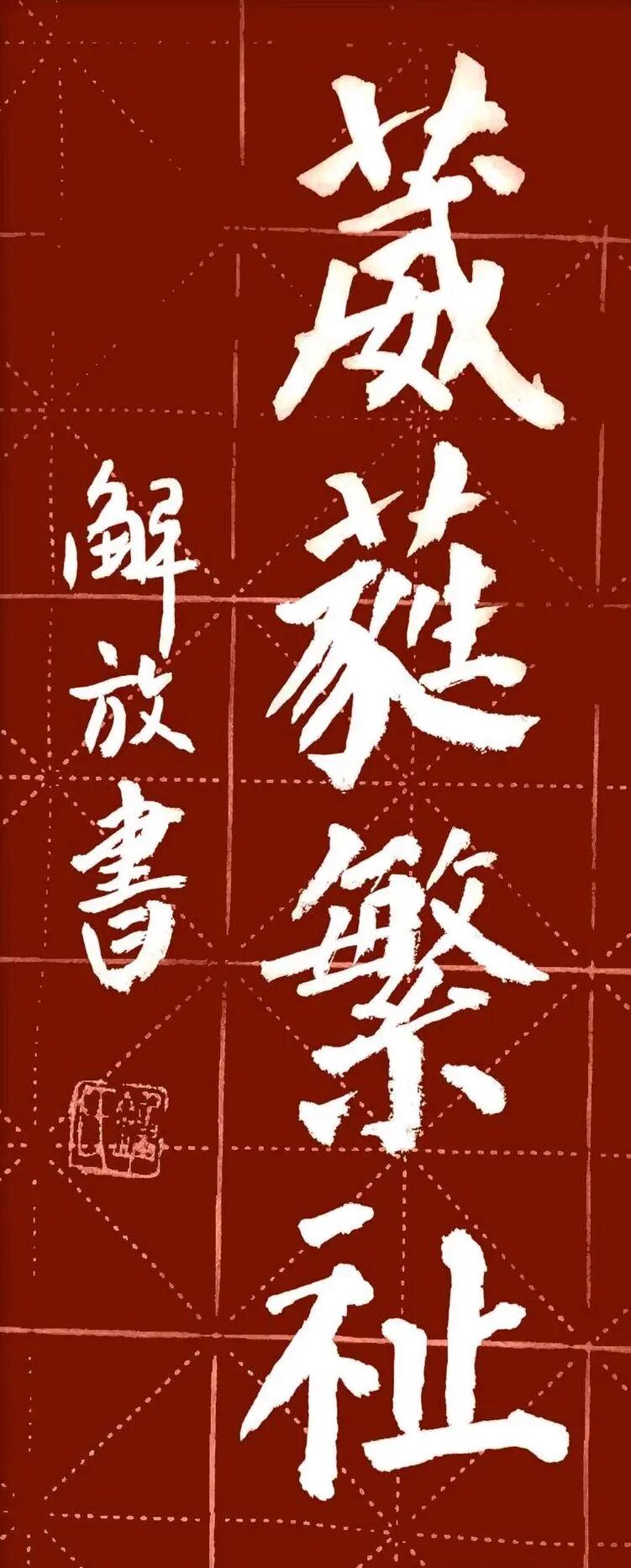 钟解放老师以其深厚的书法造诣和独特的艺术风格,成为当代书法界备受瞩目的代表人物。他坚守传统根基,注重楷法谨严的传承与坚守;同时,他又勇于创新,在传承中融入个人独特的艺术思考,形成了别具一格的书法风格。他的颜体楷书作品不仅具有传统楷书的严谨和规范,更融入了现代艺术的审美价值和创新精神。在未来的书法艺术道路上,我们期待钟解放老师能够继续传承与创新并重,创作出更多具有时代气息和艺术价值的优秀作品。