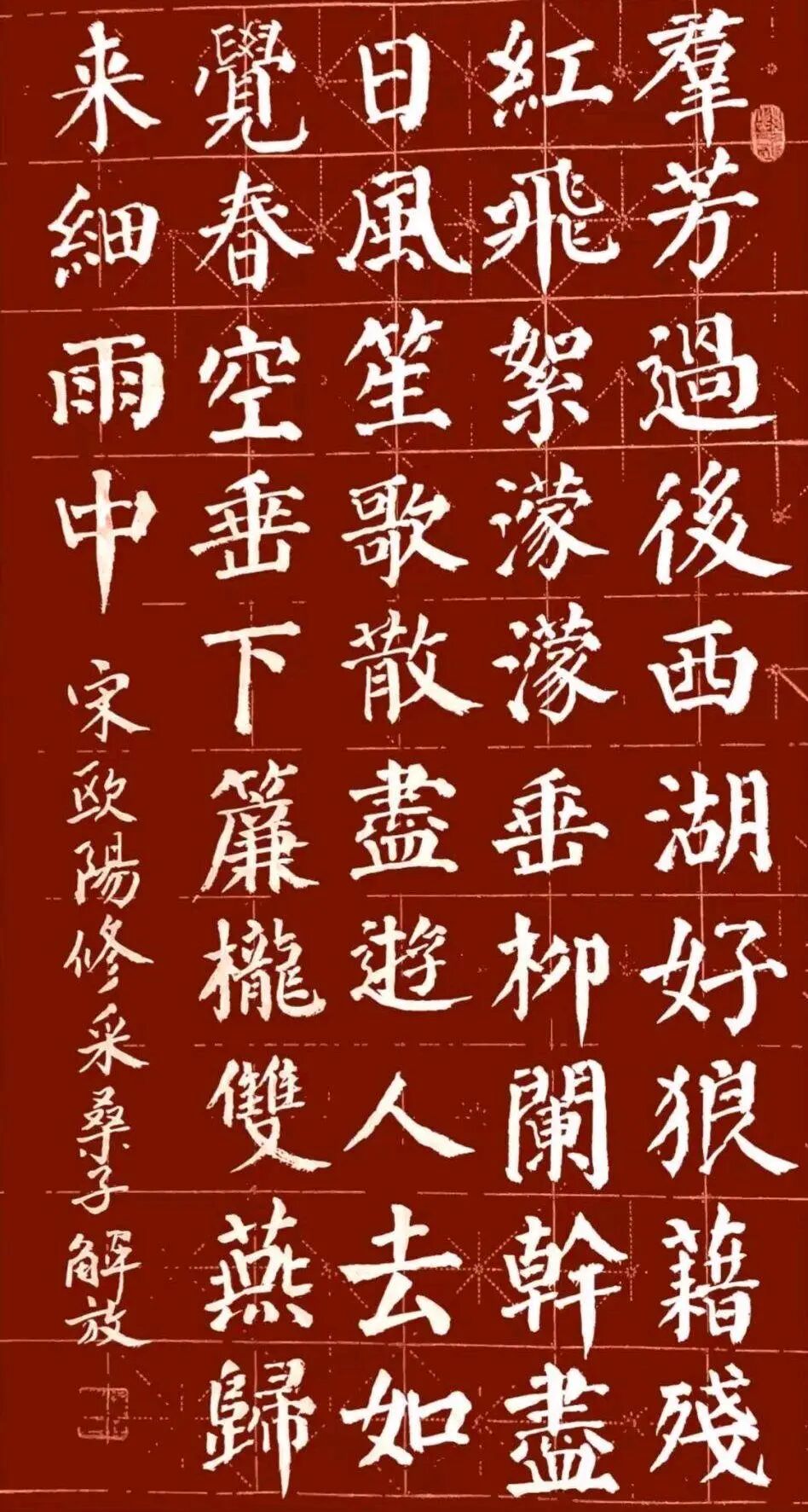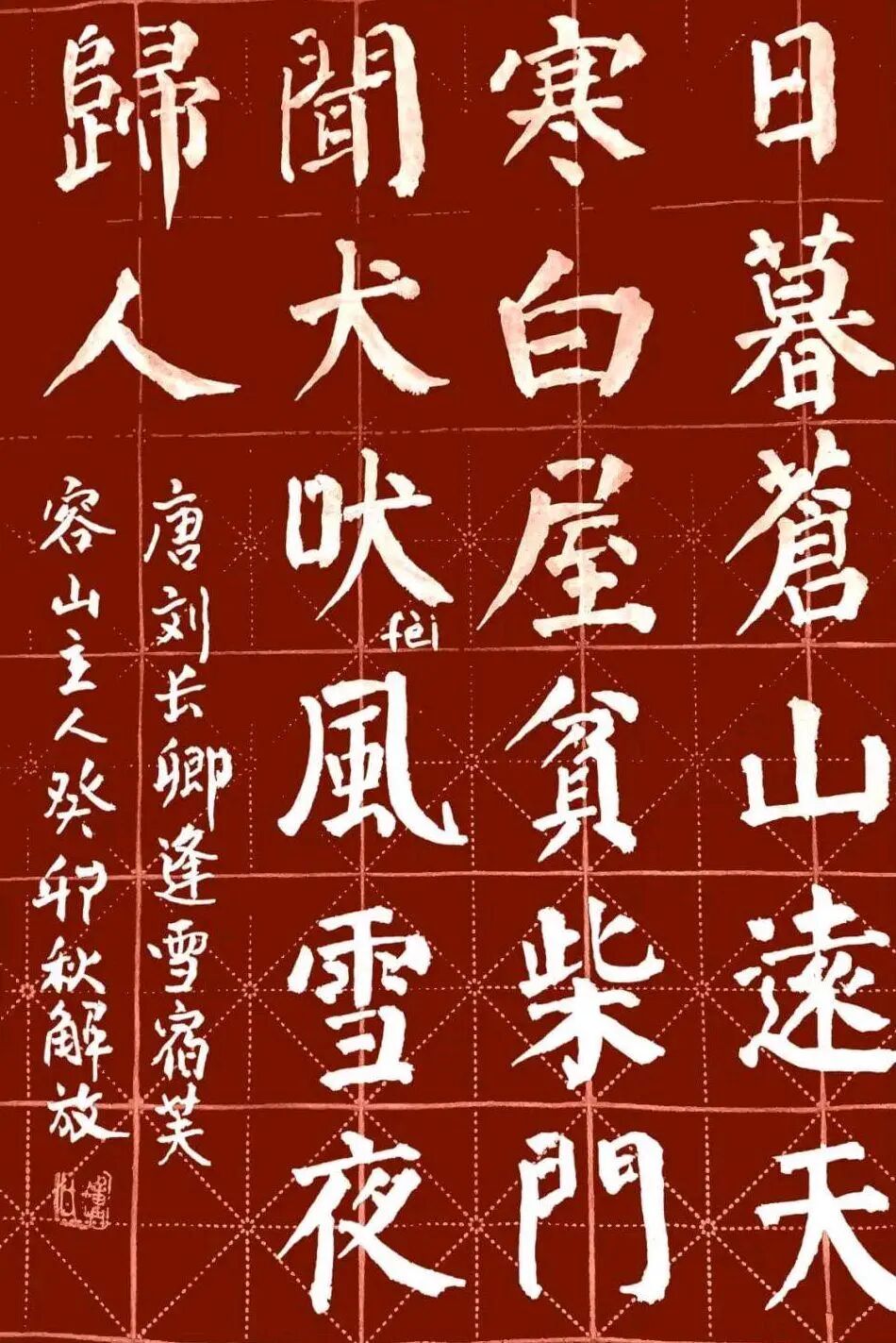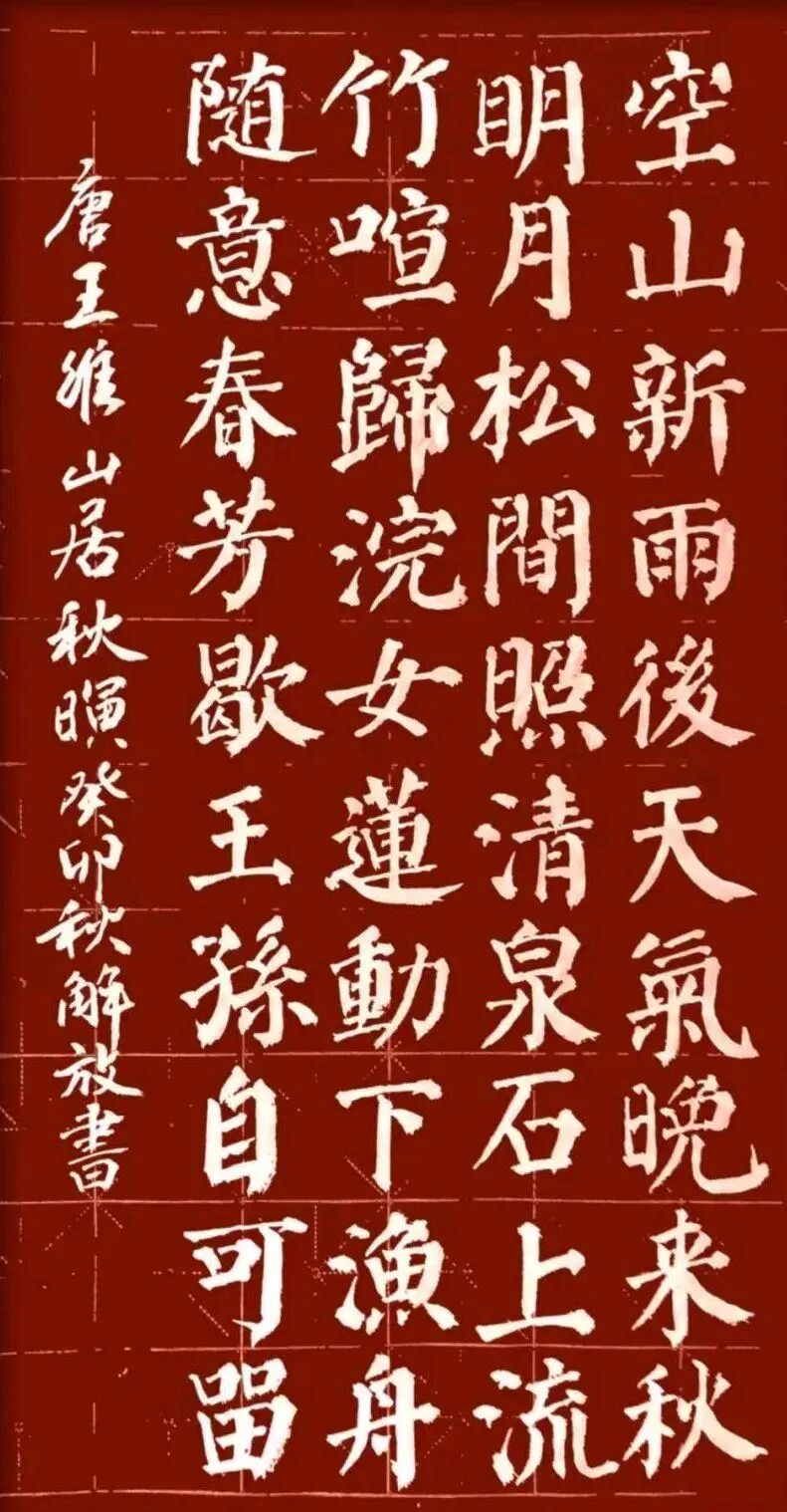 在笔法上,钟解放老师不仅继承了颜体楷书的稳健有力,还融入了自己独特的笔触和节奏感。他善于运用中锋和侧锋的结合,使笔画既有力度又不失柔美;在行笔过程中,他注重节奏的变化,通过快慢、轻重的调整,使作品充满韵律感和动感。这种笔法的创新,使得他的颜体楷书作品在保持传统韵味的同时,又具有现代艺术的审美价值。
