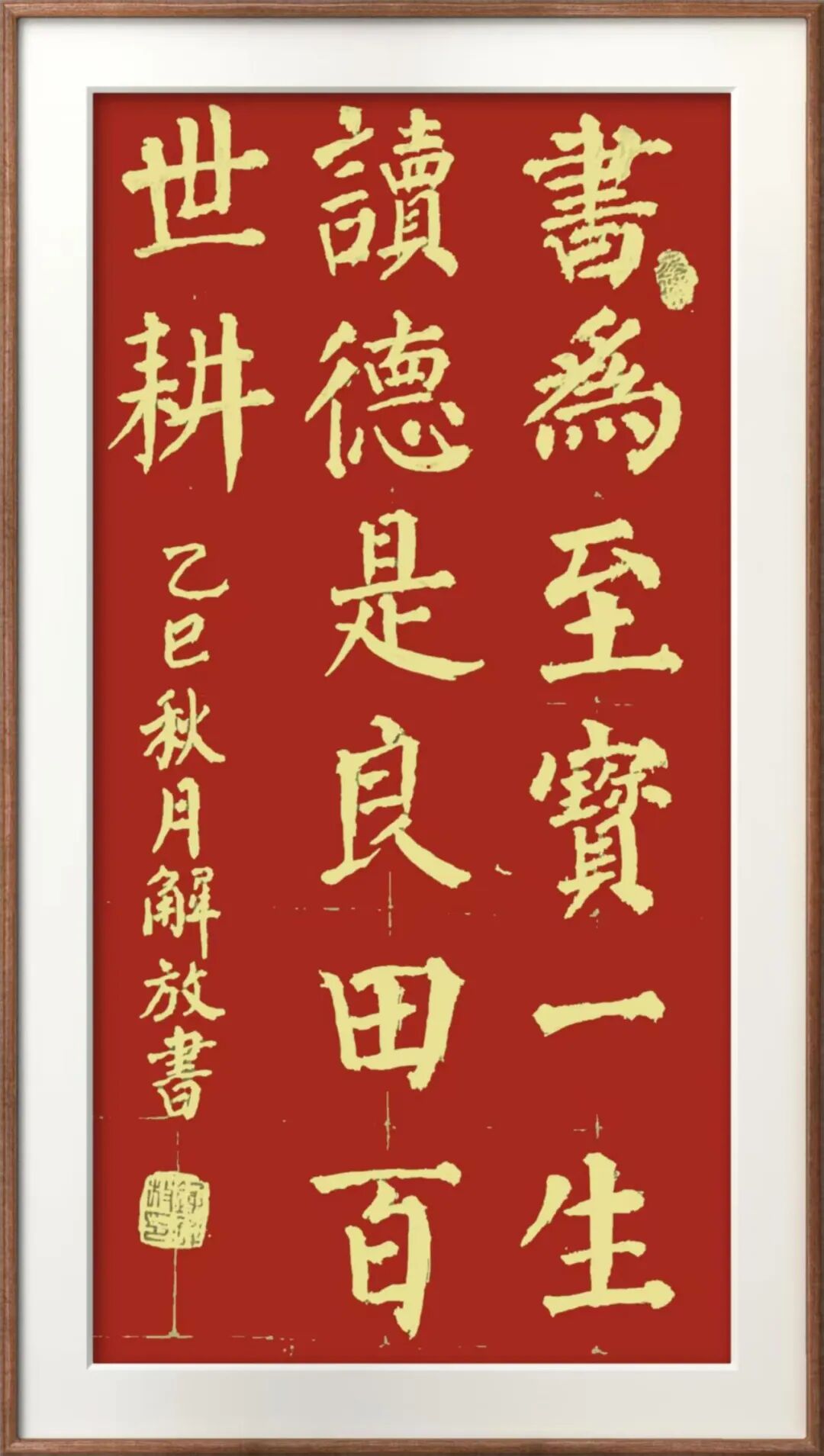 在笔法上,他延续颜体“肥劲”的核心特质,笔画粗壮饱满却无臃肿之感,每一笔都力透纸背,彰显出颜体独有的雄浑大气。这种对结字与笔法的独特处理,使得他的作品在视觉上极具冲击力,让人过目难忘。 多年来,钟解放老师凭借深厚的艺术造诣和不懈的创作热情,创作出了《立命为天地立心》《日暮苍山远》《同心共筑中国梦》等众多佳作。这些作品不仅展现了他在书法艺术上的精湛技艺,更蕴含了他对人生、对社会的深刻思考。每一幅作品都是他对美的追求、对艺术的热爱、对生活的感悟的集中体现。 在艺术认可与传播层面,钟解放老师的作品影响力早已跨越地域界限。他的书法作品不仅在国内广受赞誉,更被多省市的书画爱好者争相收藏。此外,还有多幅佳作经由友人传至日本、新加坡、韩国等亚洲国家,被海外书法爱好者珍藏。这些作品不仅成为了中外文化交流的纽带,更彰显了中华文化的魅力和书法艺术的无国界性。 在泾阳县委宣传部等单位联合举办的“携手蓝天保卫战 共建美丽泾阳”主题生态文化作品征集活动中,钟解放老师的作品《绿水青山就是金山银山》凭借精湛技艺与深刻主题脱颖而出,斩获奖项。这一荣誉不仅是对他个人艺术成就的肯定,更是对他多年来致力于书法艺术传承与创新的高度认可。