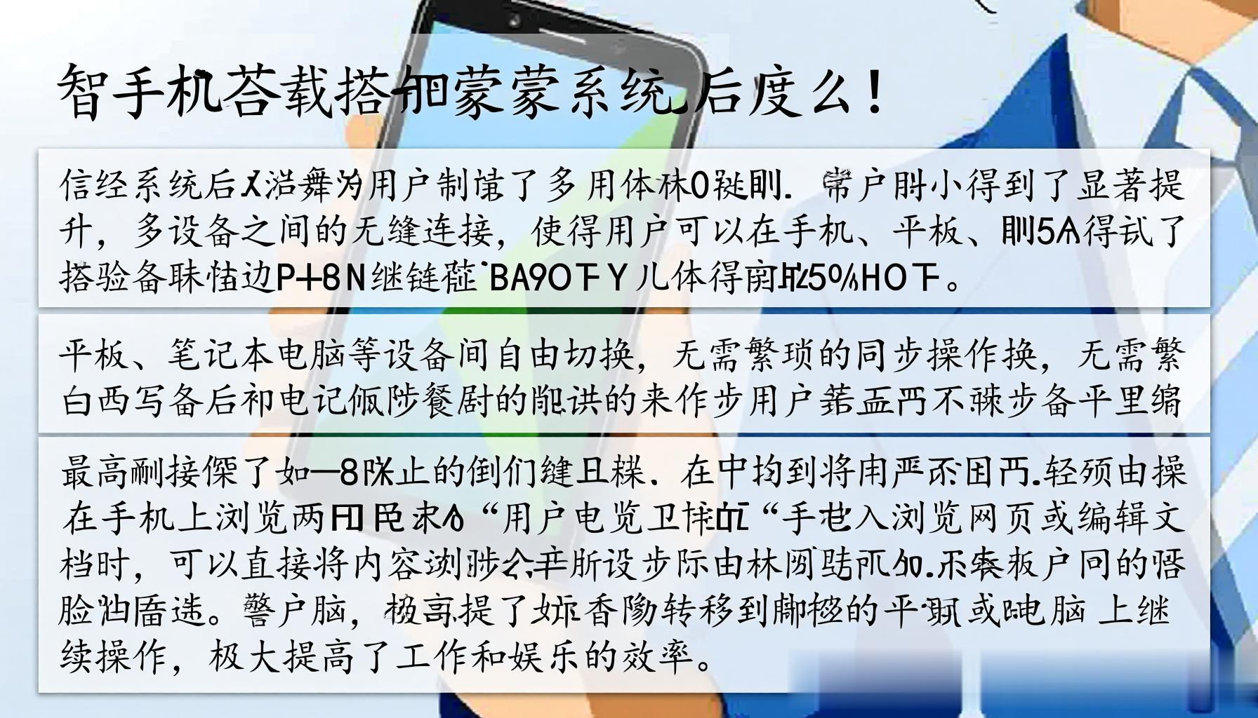 华为的智能手机搭载鸿蒙系统后,用户体验得到了显著提升。多设备之间的无缝连接,使得用户可以在手机、平板、笔记本电脑等设备间自由切换,无需繁琐的同步操作。例如,用户在手机上浏览网页或编辑文档时,可以直接将内容转移到平板或电脑上继续操作,极大提高了工作和娱乐的效率。