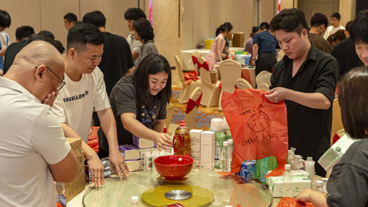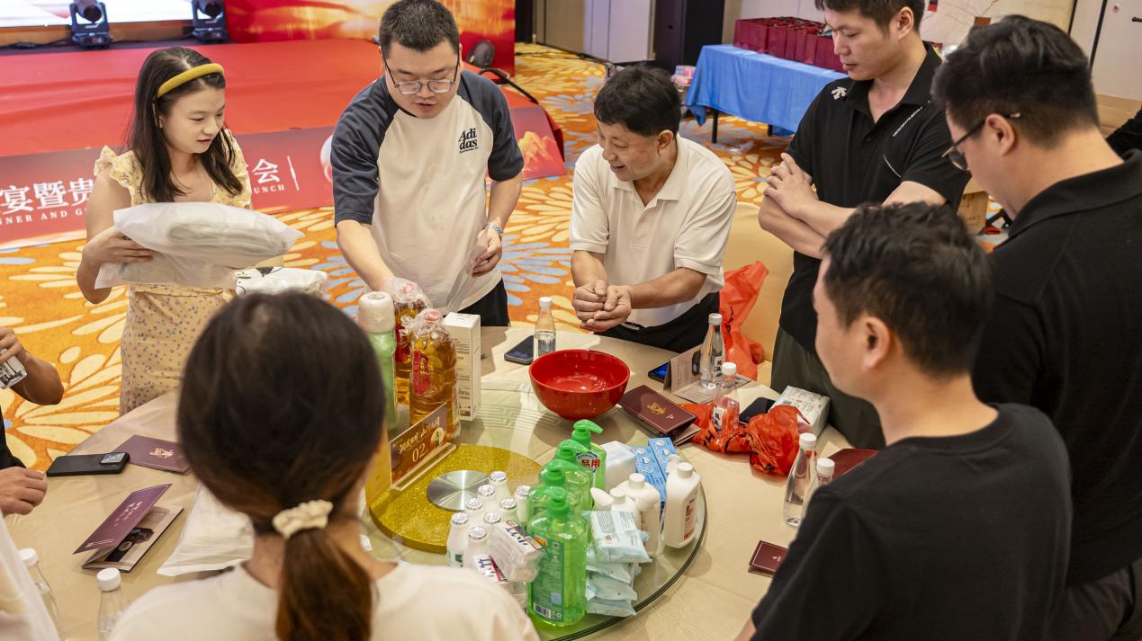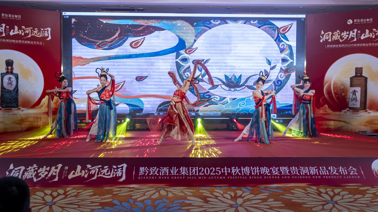 晚宴环节则将“雅”与“趣”完美融合:古筝《象王行》《女儿情》的旋律萦绕全场,与贵洞的东方韵味相得益彰;舞蹈《沁莲》清雅灵动,似贵洞酒的绵柔;手持贵洞新品的《烟火尽繁华》表演,更让“酒与山河”的意境具象化;有奖竞答、“中秋摇摇乐”“月下音乐会” 等有奖互动中,黔致酒业更是诚意满满将新嘉宾贵洞系列产品、简礼浓香新品作为奖品赠送,一份份奖品不仅是游戏的奖励,更成了大家直观感受产品、提前“尝鲜”市场利器的机会,彼此合作的情谊在热闹里愈发深厚。
