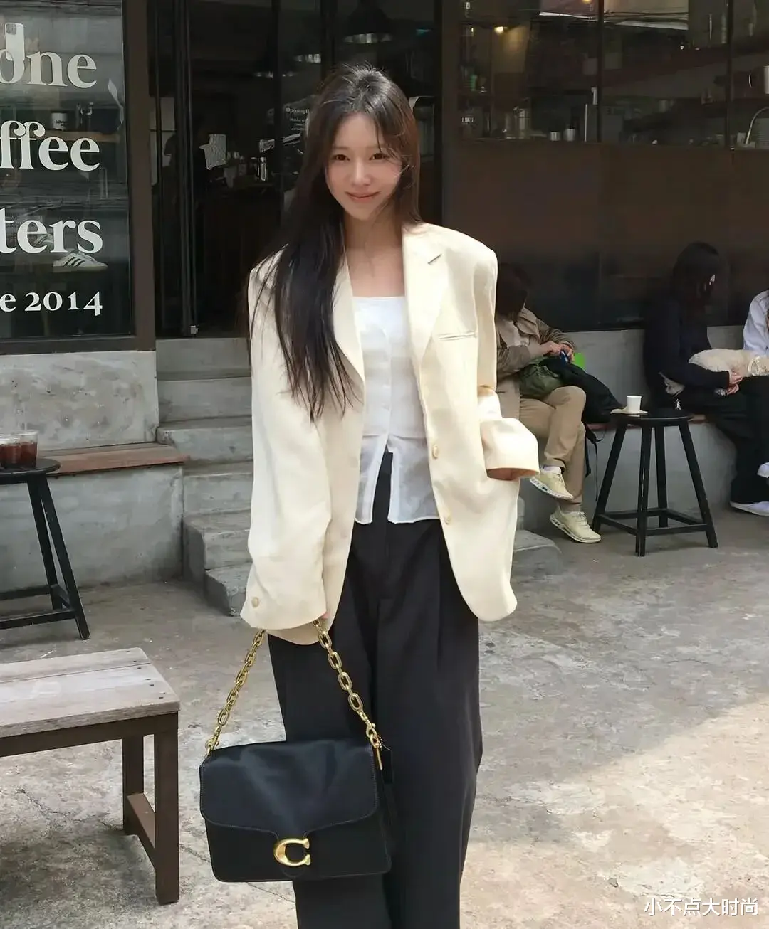 矮个子牛马职场必备外套就是西装了,自带利落气场,通过松弛感的穿搭可以打破西装的严肃沉闷感。