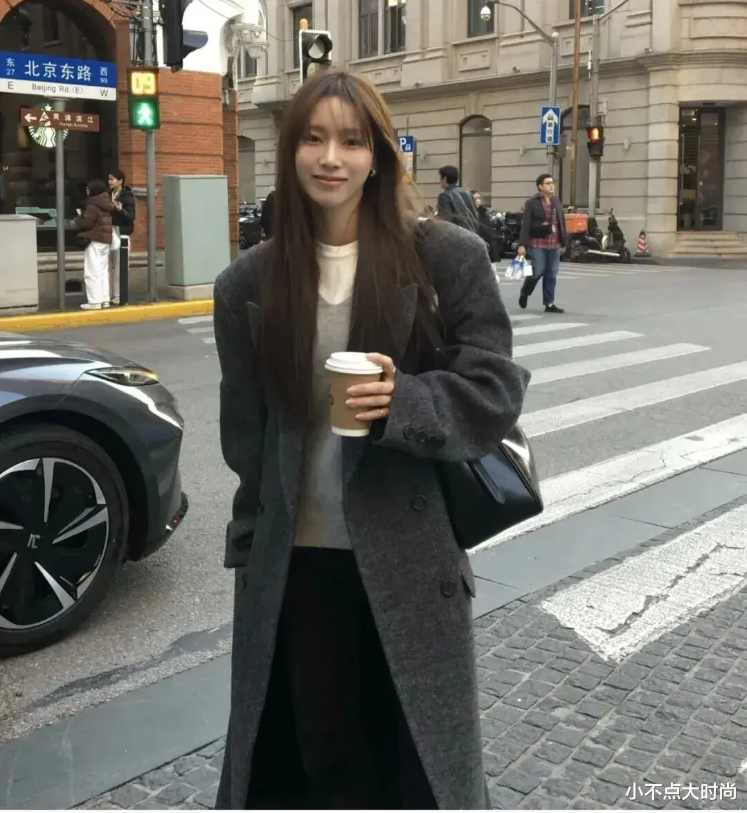 奶咖色系的长款大衣,只要长度选择合适,矮个子也能驾驭。不超过脚踝的长款、合身的版型,就很显高。微微的宽松可以增添温柔松弛感。▼