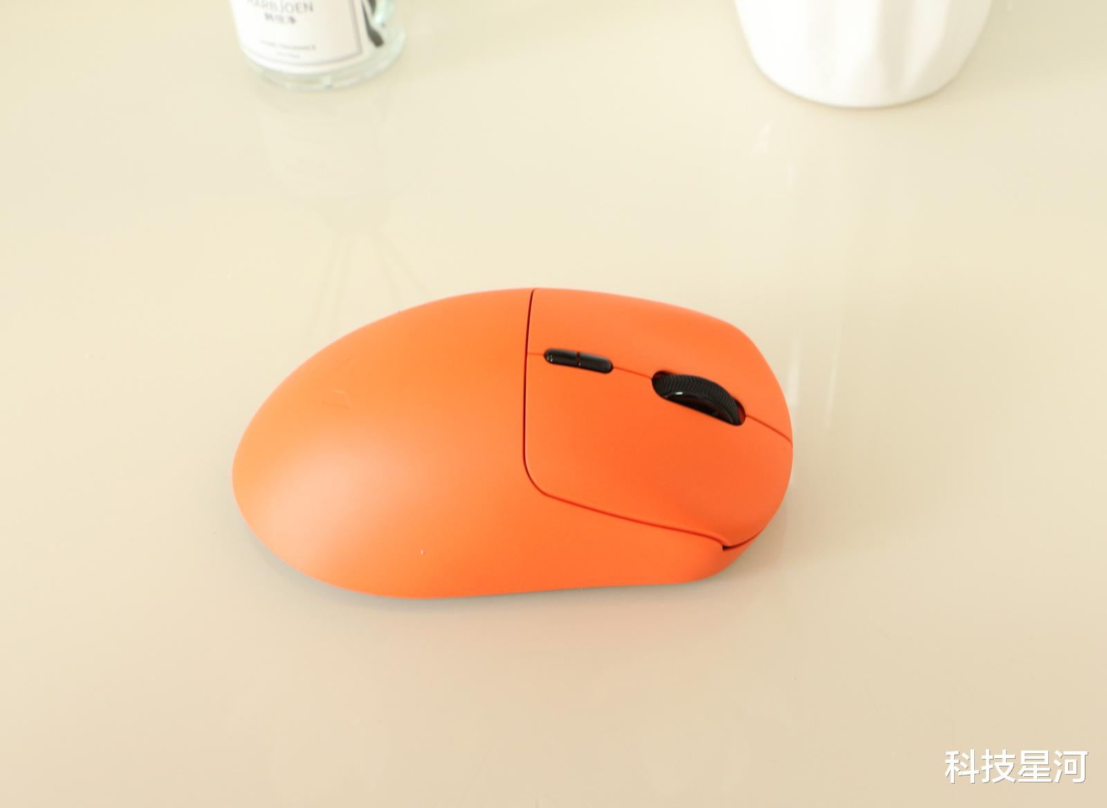 VT3焰影橙造型设计充分兼顾手感与实用性,鼠标背部大倾斜弧度更贴合右手握持习惯,趴握时不但充分承托掌心,其腰线内收还利于使用时提拉、急停。