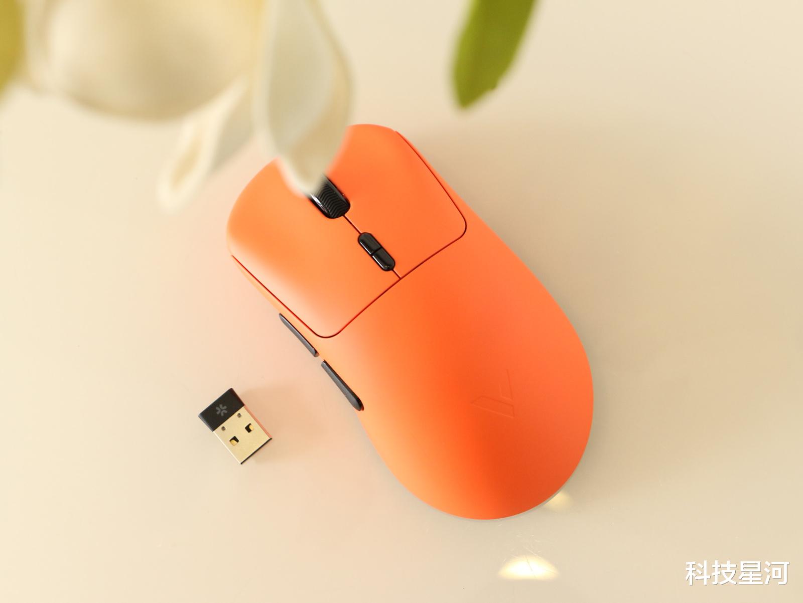VT3焰影橙内置800mAh锂电池,在Nordic 54系列主控芯片的加持下,功耗控制出色,1K均衡模式下续航可达750小时,即使在8K竞技模式下也能有长达120小时的超长续航。