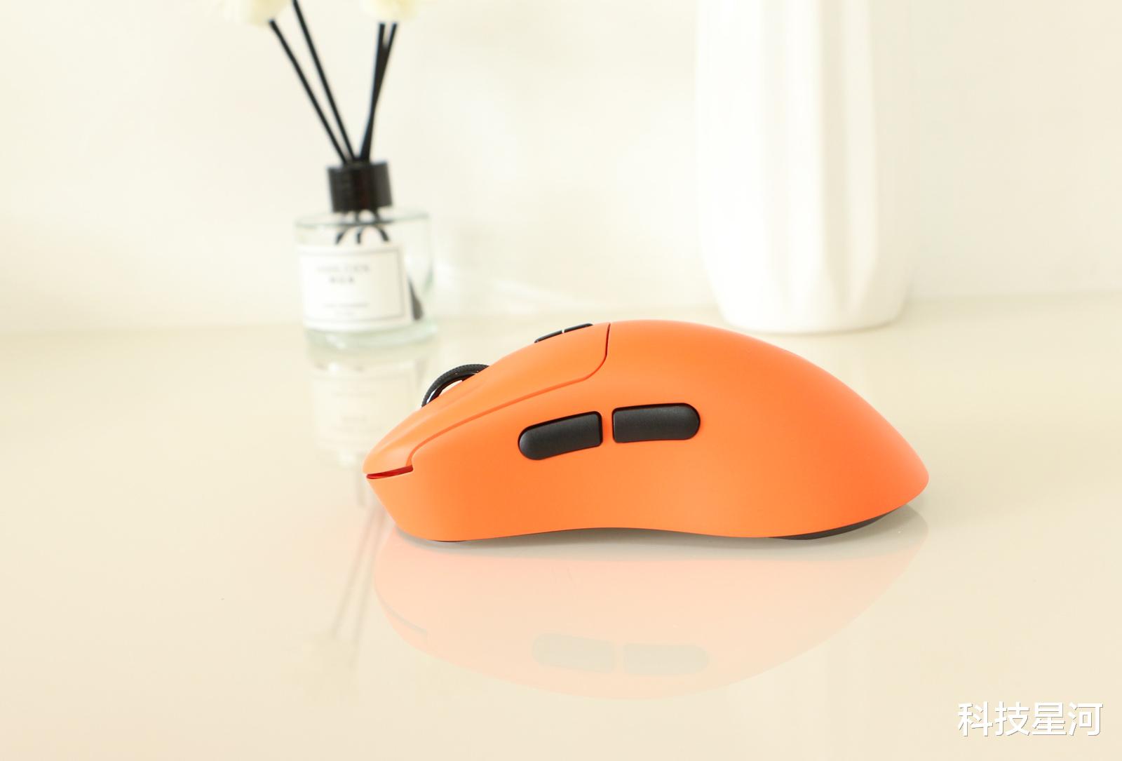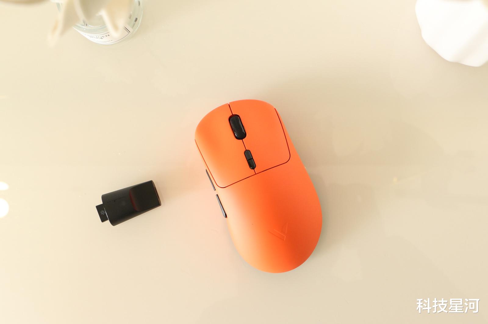 VT3焰影橙配色打破了我对电竞外设的硬核刻板印象,个性十足的外观、53g轻量化设计+右手人体工学非对称造型,原相3398光学引擎原生支持双8K回报率,欧姆龙机械微动搭配TTC滚轮,无论是FPS游戏的急停拉枪,还是游戏的连招操作,都能做到精准跟手无延迟,按压清脆顺滑。