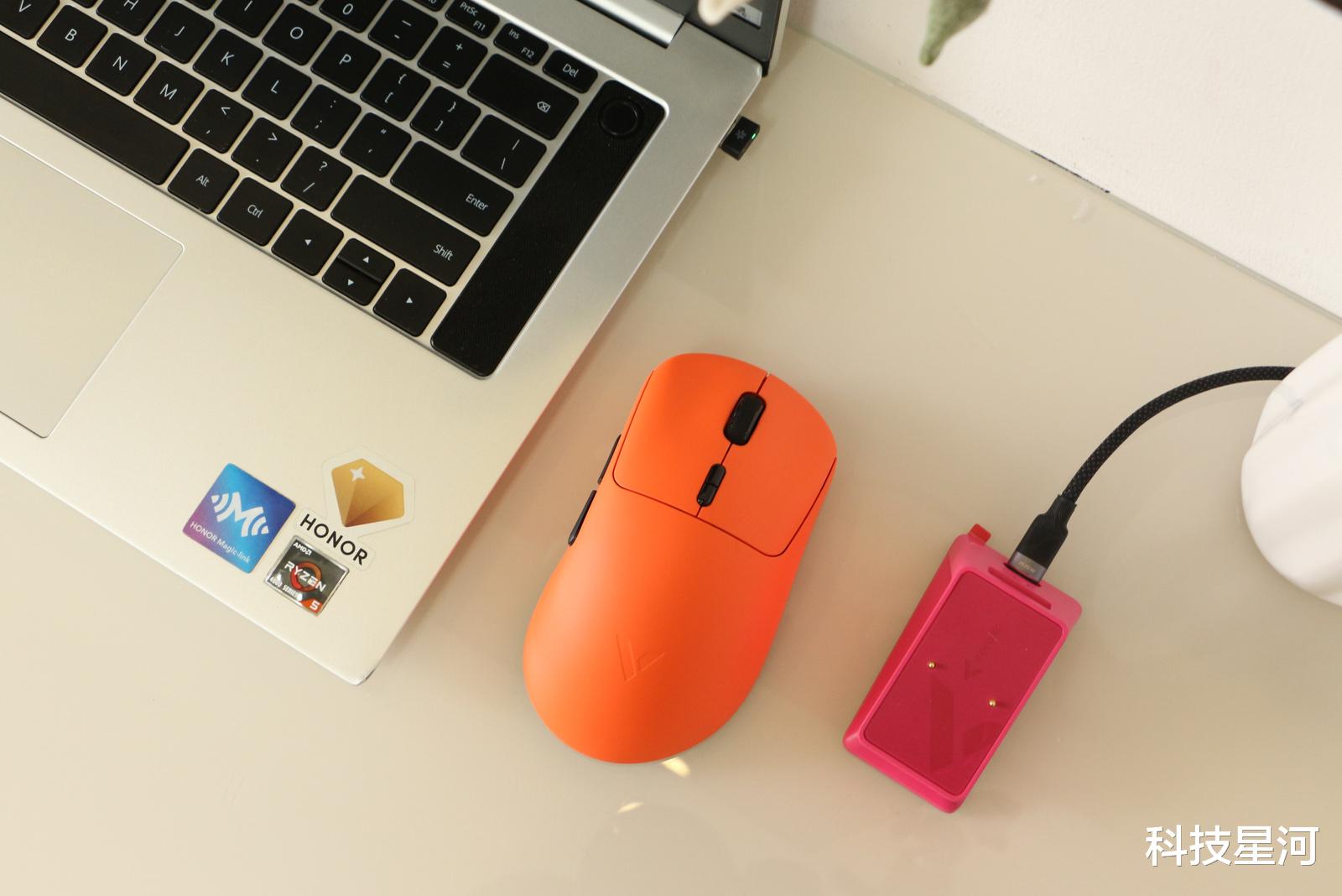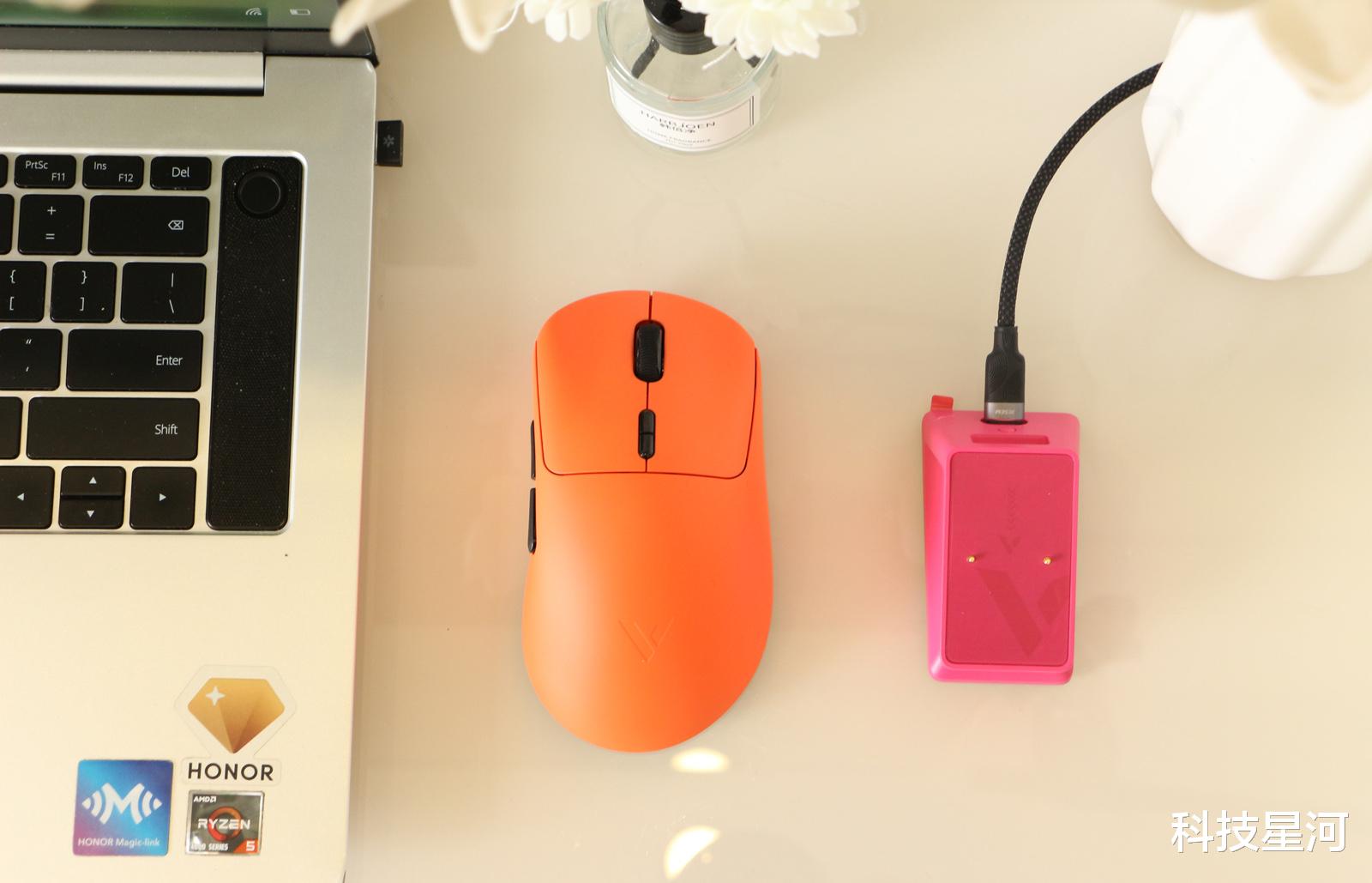 雷柏VT3焰影橙双模电竞鼠标+P5 PLUS幻彩充电底座,就是这么一款优秀的叫好又叫座的外设组合,它不仅以焰影橙等多彩的配色打破电竞外设非黑即白的硬核刻板印象,更以轻量化手感、原生双8K性能与便捷充电体验,兼顾我们玩家的核心需求与桌面颜值,一下子捕获了我的心。