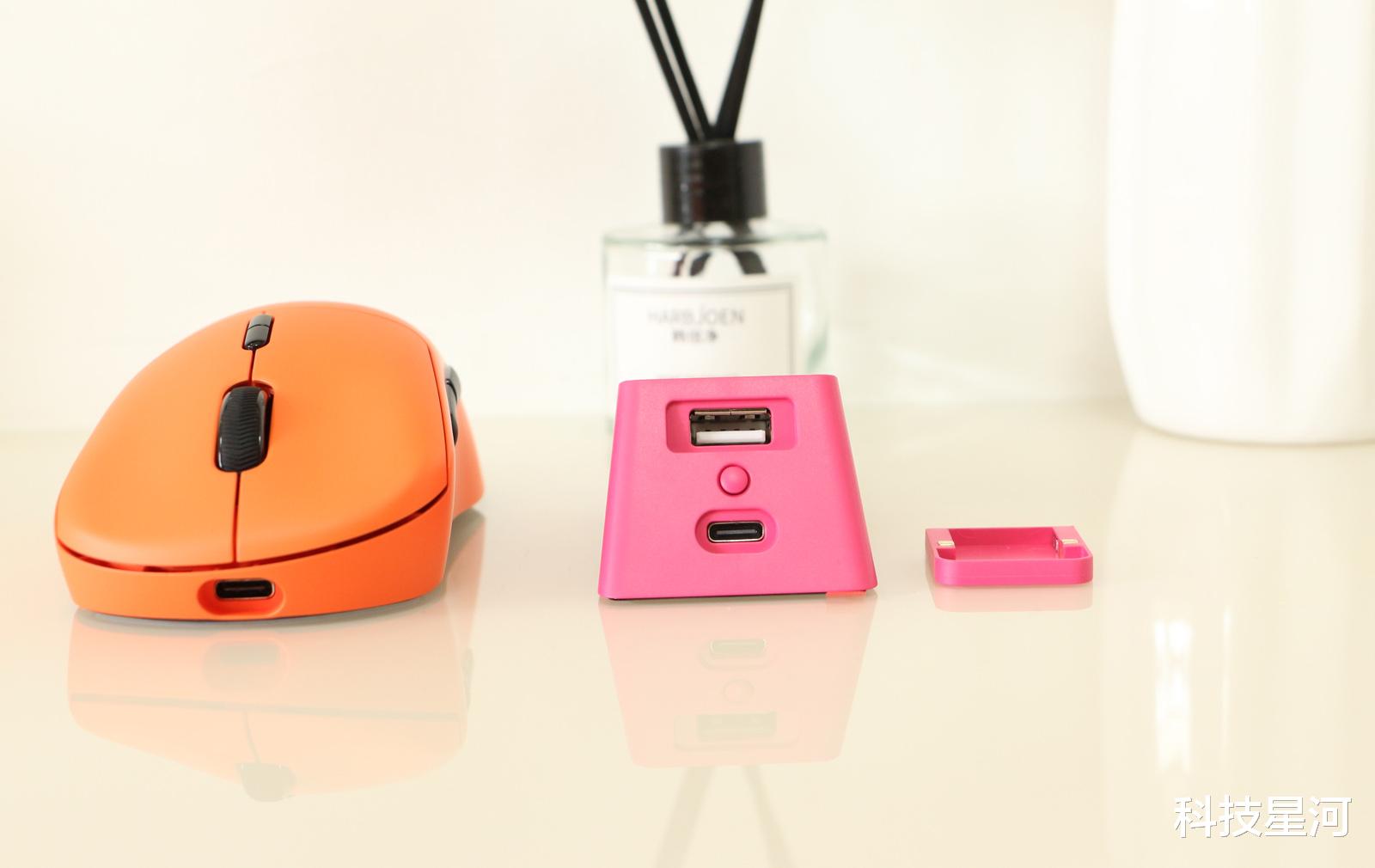 和VT3焰影橙个性色彩一样,P5 PLUS充电底座采用了树莓粉的色彩,与VT3焰影橙鼠标搭配,十分协调,可轻松融入各类桌面风格。