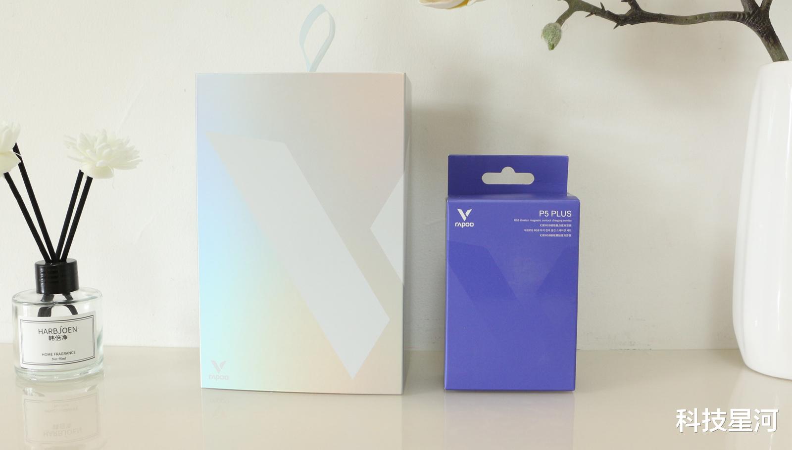 雷柏VT3焰影橙与P5 PLUS充电底座外包装整体设计简约大气,大大的雷柏V系列logo,又不失电竞氛围感。