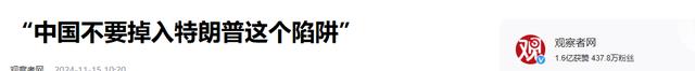参考信源:“中国不要掉入特朗普这个陷阱” 2024-11-15 10:20 观察者网
