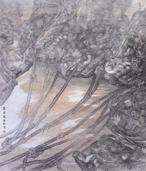 丁原禄的画作从传统水墨中走出,又融合了东西方绘画的艺术技法,作品兼具思想性和艺术表现力。上世纪九十年代以来,他以独特的艺术视角,深度挖掘了山东沿海渔村,渔民出海捕鱼所用的木制渔船的素材。那些饱经沧桑的渔民和渔船,都受到了他的艺术审视。他借助原始粗笨的木制渔船的视角,表现了渔民海上作业打捞生计,劈风斩浪向死而生,艰辛而不屈的生活和情感世界,也充分体现了社会主义新农村基层劳动者昂扬的精神风貌。