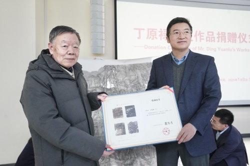 1月9日下午,丁原禄渔船系列中国画作品捐赠仪式在中国国家画院举行。捐赠仪式上,艺术家丁原禄先生将自己倾力创作的四幅精品力作:《晨雾》、《翼》、《大海印记》、《岸》无偿捐献给中国国家画院收藏,国家画院为丁原禄先生颁发了收藏证书。