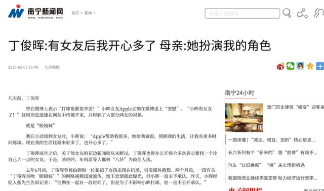 【2】南宁新闻网,2013-02-05,“丁俊晖:有女友后我开心多了 母亲:她扮演我的角色”.