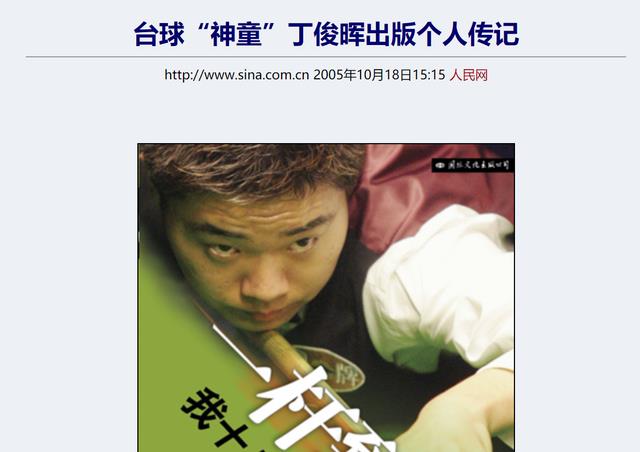 【1】人民网,2005-10-18,“台球“神童”丁俊晖出版个人传记”.
