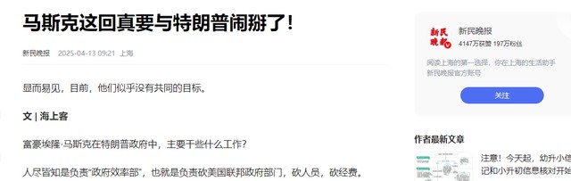 2.马斯克这回真要与特朗普闹掰了!——新民晚报2025-04-13 09:21上海