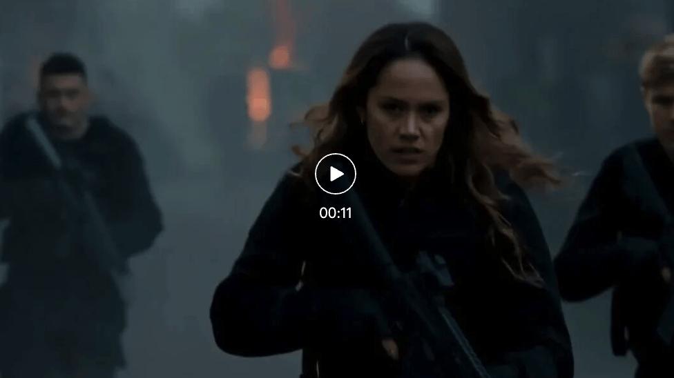 这段多镜头战争戏的提示词比较复杂,从城市天际线的航拍俯冲,到街道上的士兵冲锋,再到不同角色的中近景和特写,涉及 6 个镜头切换。