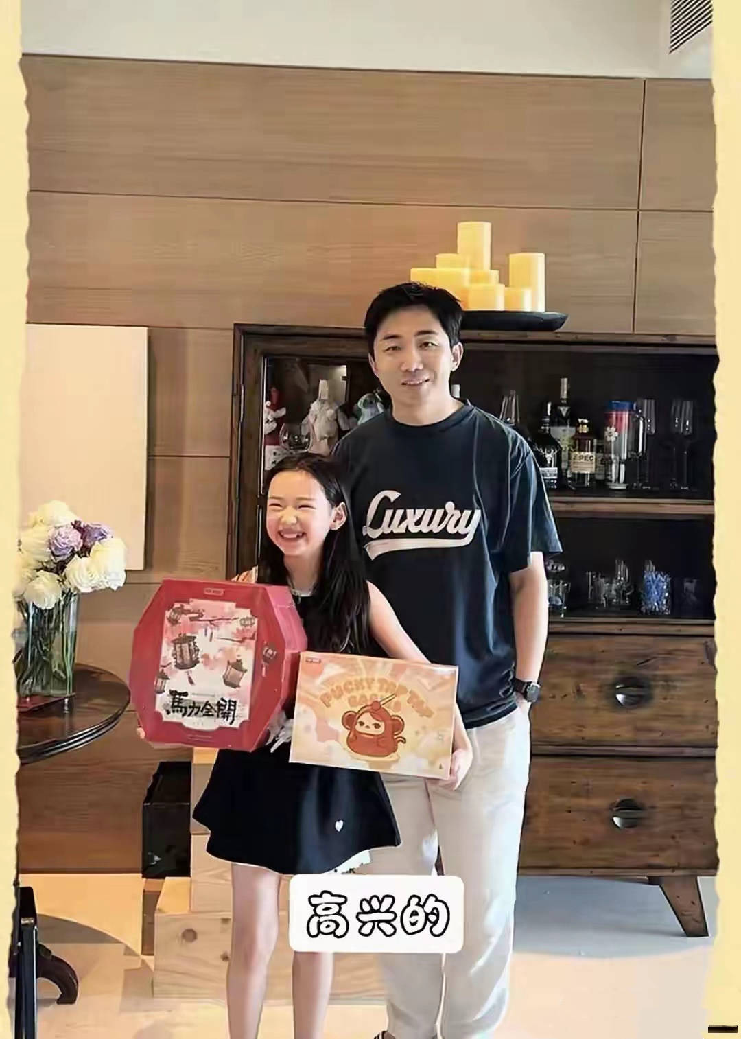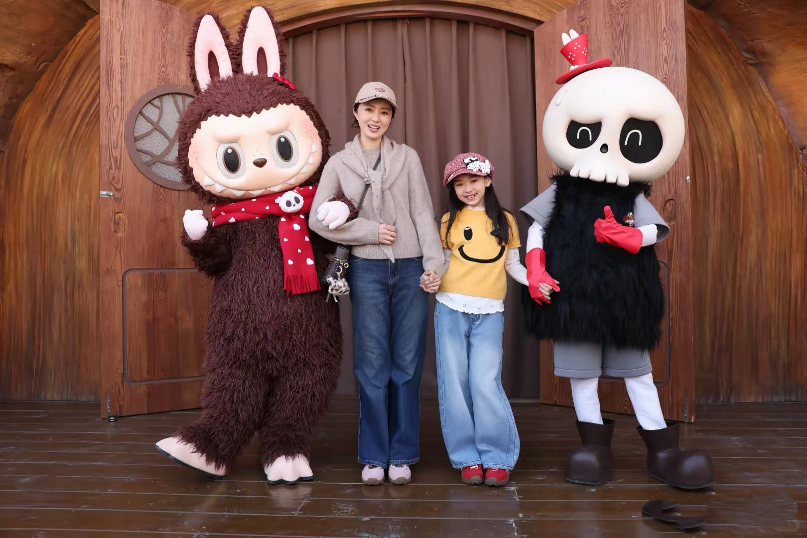 小酒窝也是泡泡玛特的超级迷妹,外出旅行也喜欢和拉布布合影拍照。她才10岁、身高已经快到妈妈肩膀了,她的模样像妈妈、性格更像爸爸高云翔。