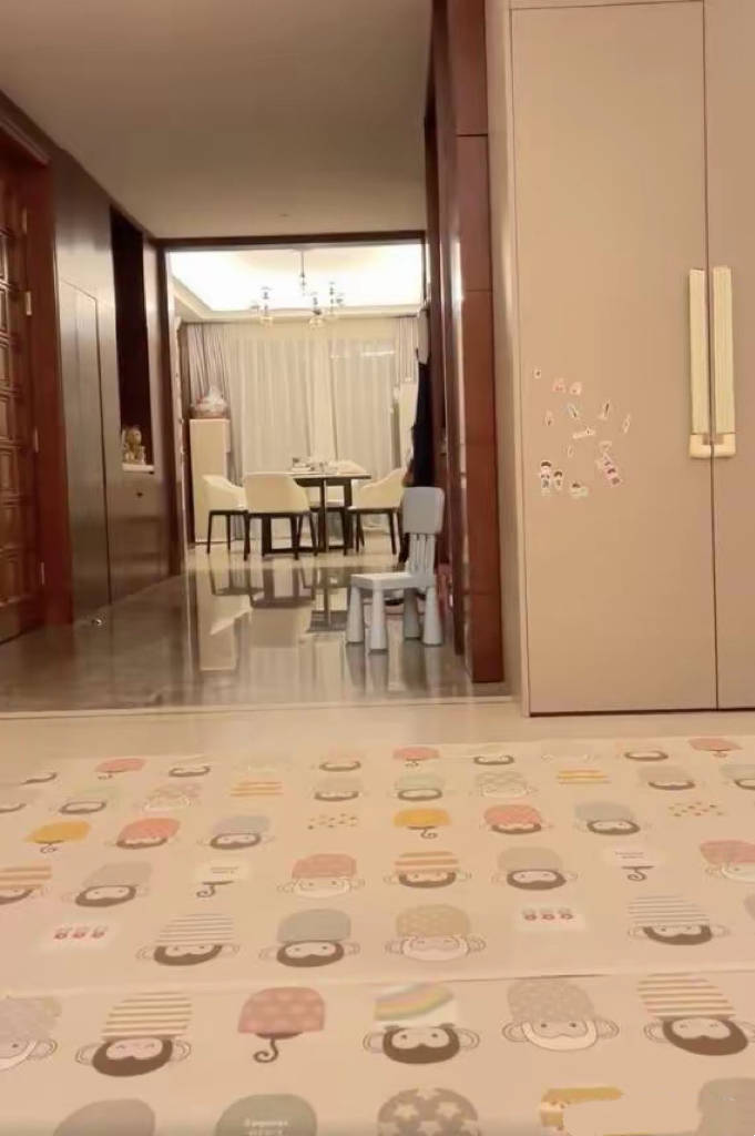 不过在这个豪宅里,丝毫没有看到张维伊的生活痕迹。冰箱上是卡通的冰箱贴,地板上铺的防滑垫也是可可爱爱的。长长的走廊、大大的客厅,这个面积超大的豪宅,显得有些空荡,甚至可以在里面骑自行车。