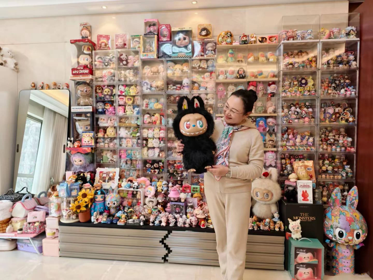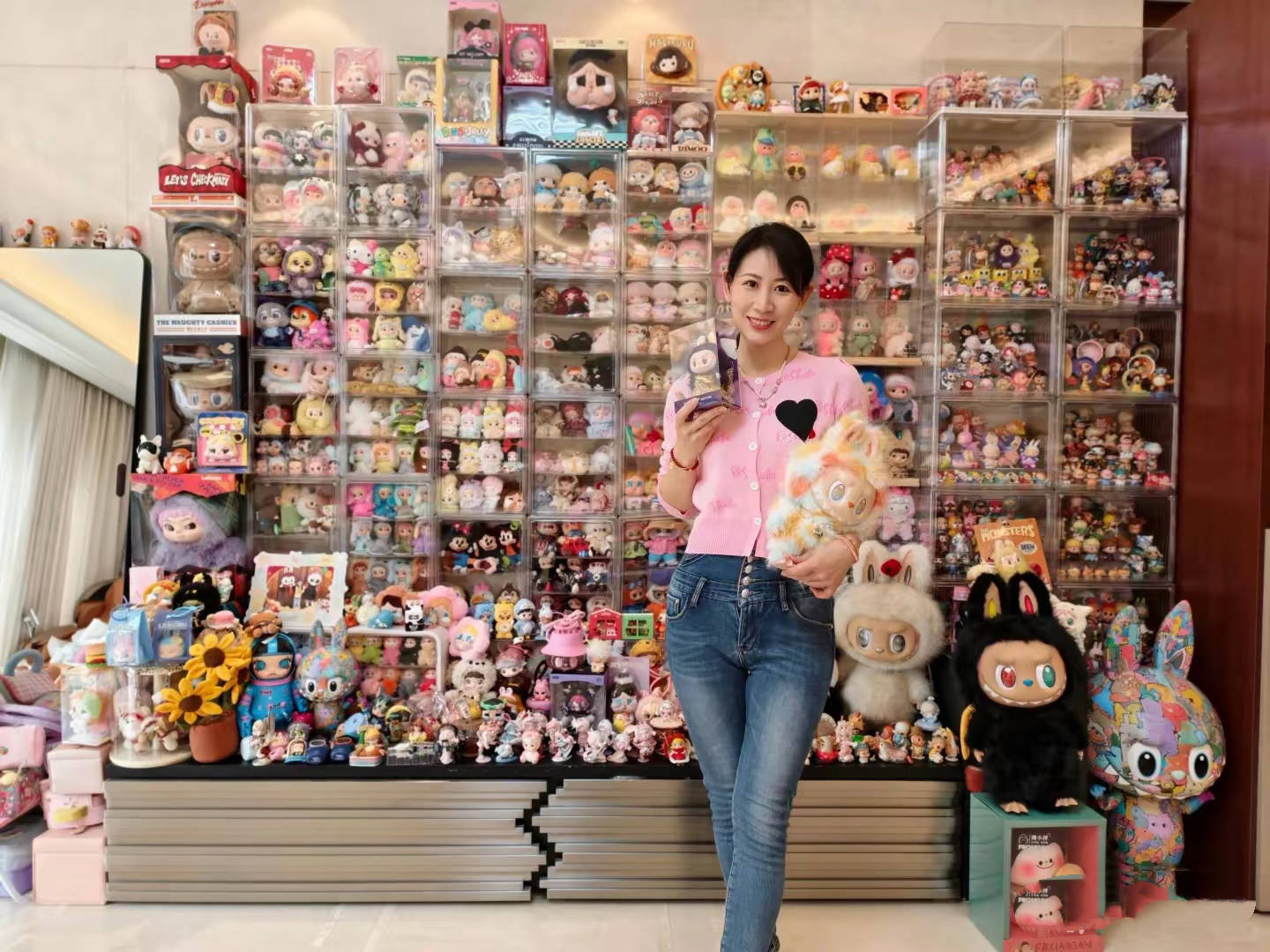 知道董璇宠孩子,没想到她对小酒窝这么好。这一整面墙的手办,拉布布、Molly系列应有尽有,大号、小号,隐藏款、稀有款,都能看到。网友粗略算了一下,光这面墙的手办就价值上百万。