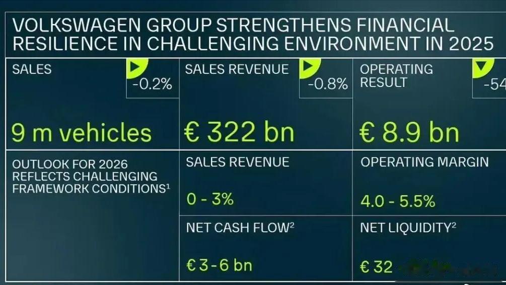 最近德国大众集团交出的2025年财报。当地时间3月10日,大众正式发布全年业绩,营业利润直接腰斩,跌至近十年最低水平,全球销量小幅下滑,中国市场也出现回落。在巨大的经营压力下,大众宣布一项重磅计划:2030年前在德国本土裁员5万人,用于降本自救。