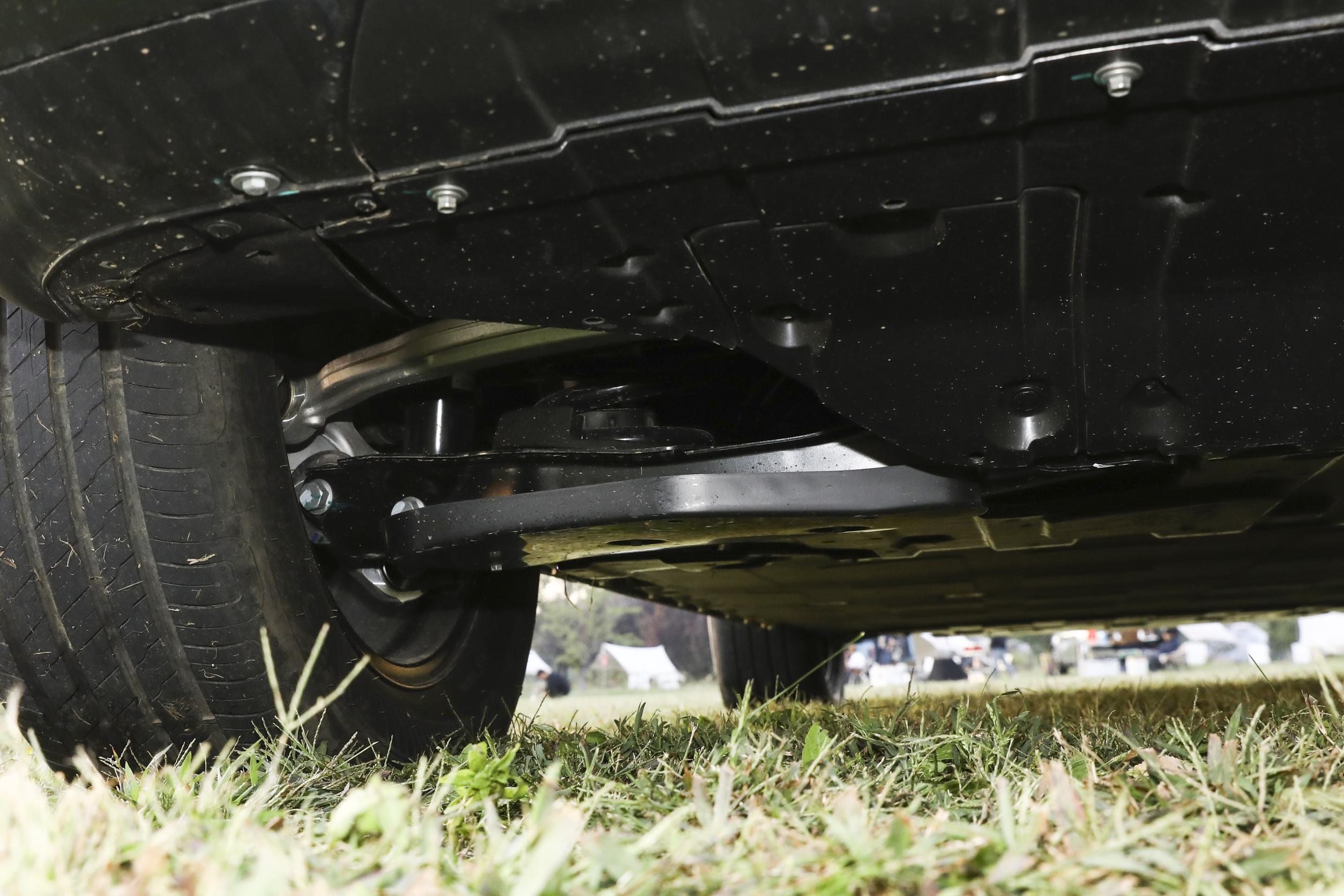 这款车提供8种全地形模式,包括湿滑、泥地、沙地、碎石、自动越野等,应对不同路况都有对应的模式可选。其中自动越野模式类似蠕行功能,支持2km/h的缓慢移动,开启后不用控制油门和刹车,只需要专注打方向就行,对于越野新手来说特别友好,不用担心油门踩重了导致车辆失控。我在城郊的碎石路段试了一下,切换到碎石模式后,车辆的动力分配和悬挂调校会自动调整,轮胎抓地力很好,没有出现打滑的情况。悬挂方面用的是前双叉臂、后五连杆独立悬挂组合,前双叉臂是铝合金材质,簧下质量更轻,轮胎贴地性更好,遇到颠簸路面时,悬挂能快速过滤震动,不会有明显的颠簸感,就算是大车,开起来也很灵活。