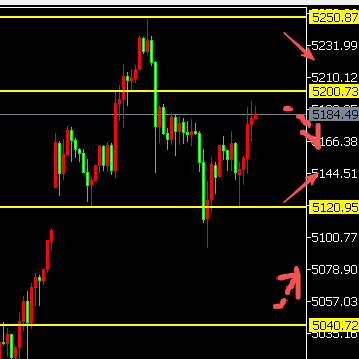 2、面临5200的位置,再次遇阻,短期内回踩调整,可看到5120的位置。此位置支撑反弹,上方继续看调整,以及挑战5200的关口。