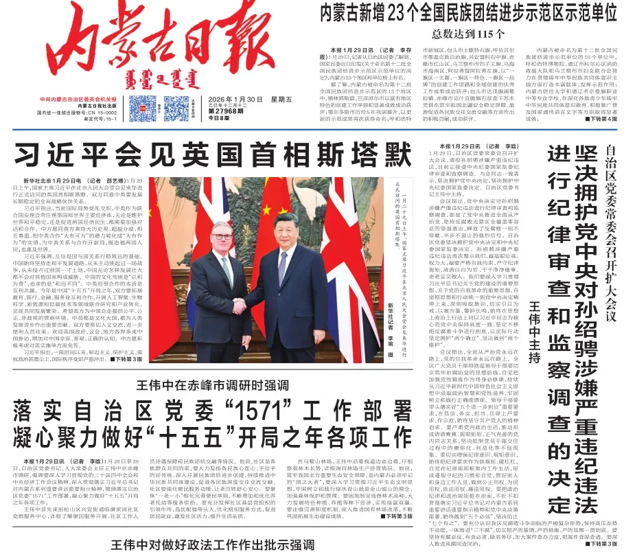 第二天,1月30日,《内蒙古日报》1版刊发《自治区党委常委会召开扩大会议 坚决拥护党中央对孙绍骋涉嫌严重违纪违法进行纪律审查和监察调查的决定 王伟中主持》。