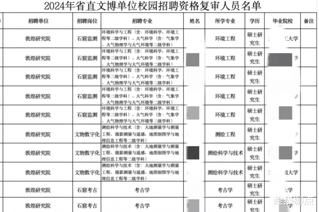 除了北大,考古圈“大佬”们也纷纷送来祝福。2020年8月20日,钟芳蓉收到来自9家考古研究机构寄来的重50斤的“礼物”。“敦煌女儿”——樊锦诗,敦煌研究院名誉院长,同时也是钟芳蓉的北大校友,给钟芳蓉送去了口述自传,并写信鼓励她“不忘初心,坚守自己的理想,静下心来好好念书”。不管是学校还是考古界“大佬”们的及时回应,都是对钟芳蓉最有力的支持,这将是她追求梦想路上的光。同时,也算是回应了网友们的质疑:对理想的执着追求,是热爱的体现,是金钱和其他物质回报不可衡量的。这位“考古女孩”,成功的将自己“农村留守女孩”的身份,升级为“考古圈团宠”。►.逆袭考上省直属事业单位——敦煌研究院2024年7月8日,甘肃省文物局官网发布了“2024年省直文博单位校园招聘资格复审人员名单”,名单上“北大考古女孩”钟芳蓉,面试成绩92.40分,排名第一!已顺利通过面试,进入体检环节,两个字“稳了”!
