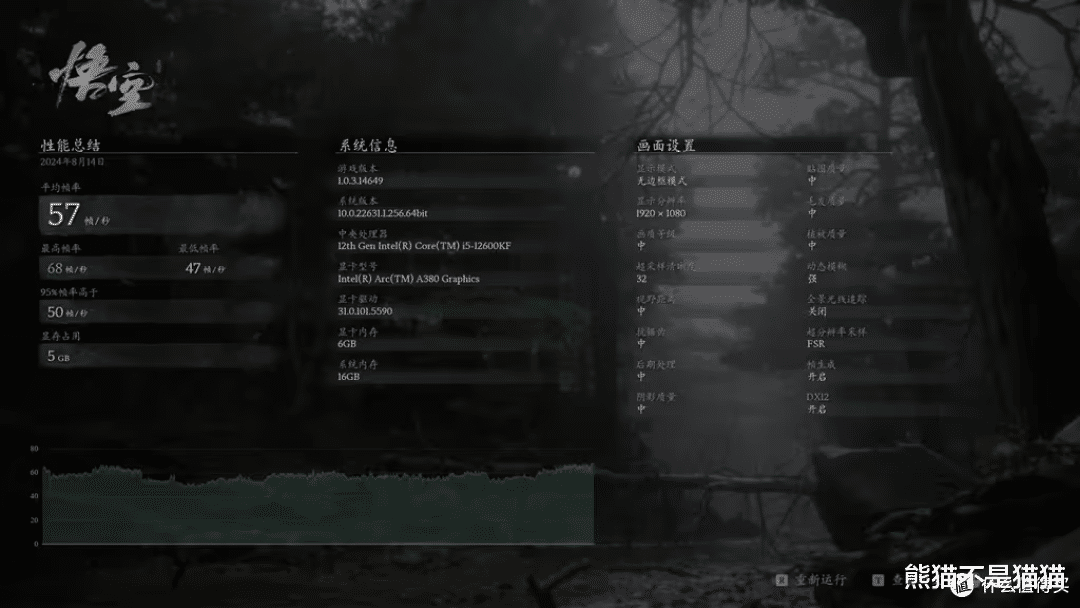 《黑神话:悟空》: 1080P分辨率,开启FSR和帧生成,中画质下平均48fps。如果把超采样调到32,平均帧率能稳在56fps左右,流畅打完通关没压力。