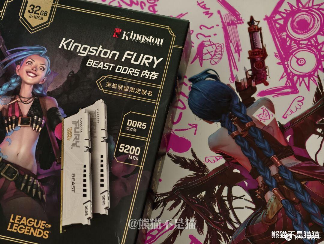 搞定了显卡,内存自然也不能拖后腿。作为资深“联名控”,熊猫手里的《英雄联盟》周边没有三十也有二十件了。这次为了给蓝戟A380找个好搭档,我特意掏出了压箱底的金士顿 × 英雄联盟联名限定套条。