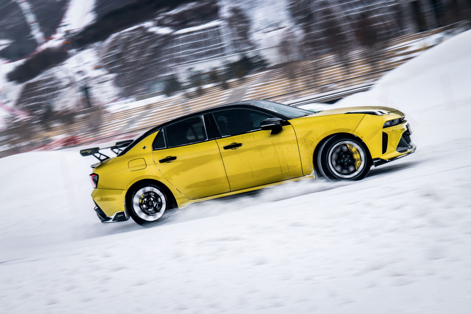 除了全方位的场景覆盖,领克03家族在雪场的冰雪漂移表演,更直观展现了其“冬日战神”的硬核实力。新领克03+性能进阶版搭载2.0TDT6双增压发动机,拥有309Ps最大马力与420N·m峰值扭矩,百公里加速仅需5.41s,即便在低温环境下,动力响应依旧“快如闪电”。其配备的第六代博格华纳智能四驱系统,可智能实现50:50黄金扭矩分配,大幅提升冰雪路面的抓地力,让漂移动作精准可控,仿佛“冰雪上的舞者”。新领克03+Racing则在此基础上更进一步,不仅延续了强大的动力输出与四驱配置,更搭载支持十段可调的Bilstein高性能减震器,可根据雪地路况实时调整,搭配优化空气动力学的碳纤维宽体套件,高速行驶时车身稳定性显著提升,成为冰雪路面的操控标杆,让性能玩家直呼“过瘾”。