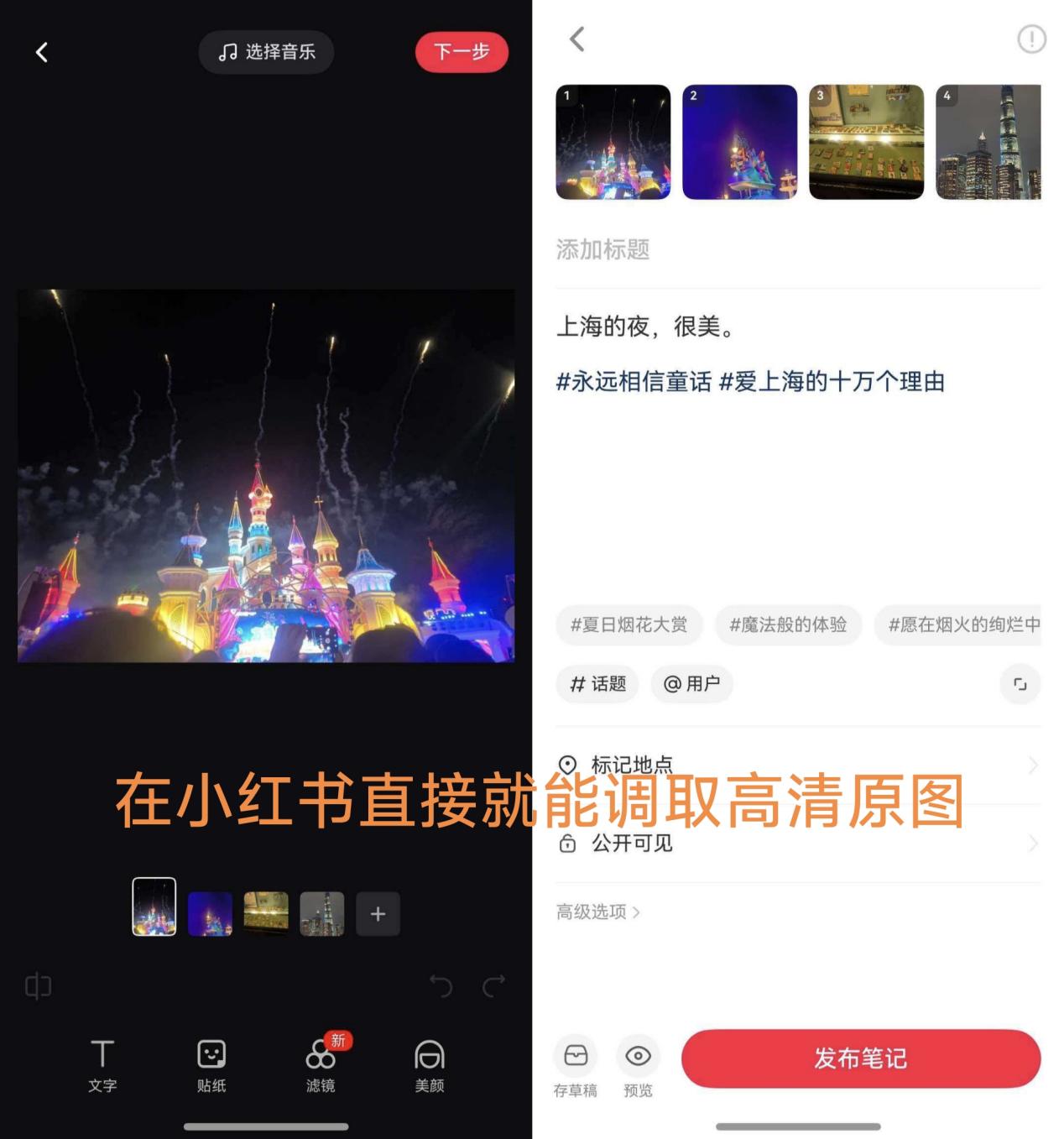 旅行结束回到家想给爸妈看我在迪士尼拍的烟花秀表演视频,也不用把高清视频从云端下到本地,直接在云图库里就能看,秒级起播,而且画质高清,一点也不卡,还不怎么占手机存储空间。想发个小红书,也不用退出应用下载云端的高清图片,打开小红书选择图片时,直接就能调用云端高清原图编辑和发布。