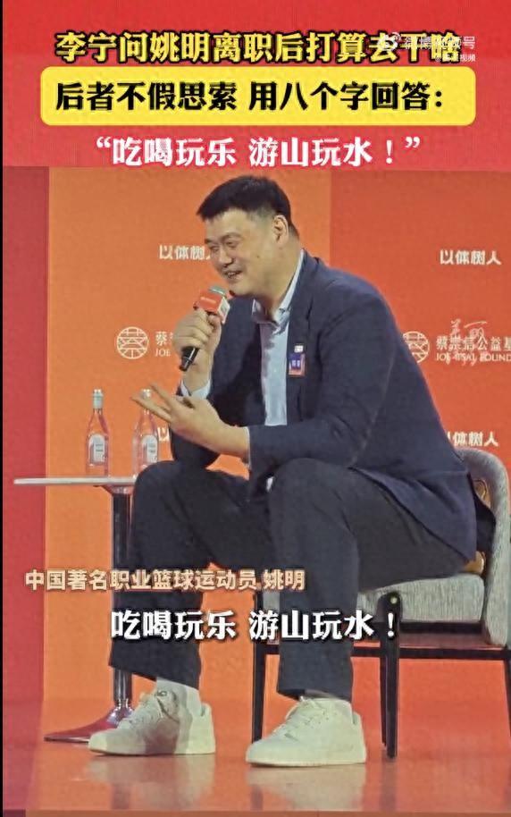 姚明扳着手指回答了8个字:“吃喝玩乐,游山玩水!