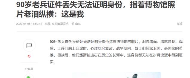 乌龙追星娱乐 2023.04.05 《90岁老兵证件丢失无法证明身份,指着博物馆照片老泪纵横:这是我》