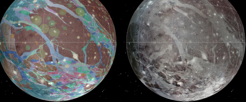 图片:基于“伽利略号”与“朱诺号”的探测数据而测绘的木卫三地图。