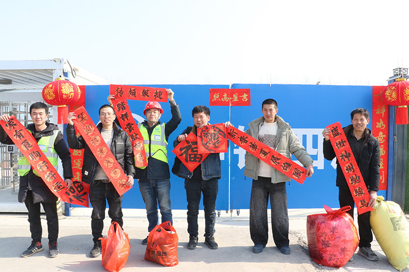 工地大门口悬挂着大红灯笼,食堂门口贴上了春联,年味在钢筋水泥间静静流淌。来自四川的钢筋工刘刚端着热腾腾的年夜饭,笑着说:“项目部给我们准备了丰盛的年夜饭,还发了春联与红包,心里特别暖。我订了大年初六的票回老家,这里干得踏实,回去也踏实。”