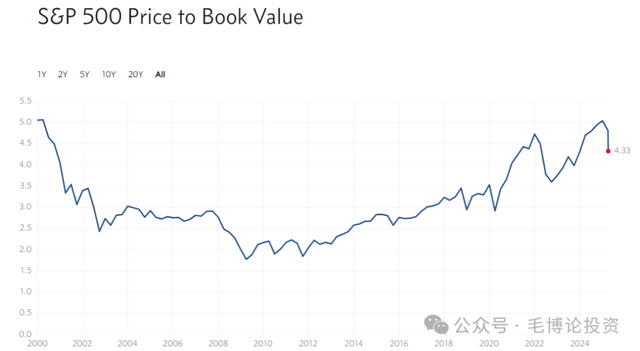美股估值过高,存在大跌风险。2025年初,美股市净率接近2000年高点,市销率超越2000点高点,Shiller PE Ratio也位居历史高位,因而对利率与业绩敏感度很高。2024年12月18日和2025年1月10日的美股下跌,美光第二财季指引逊于预期,均证明2025年美股确实存在大跌风险,首当其冲的就是半导体与人工智能(《2025年A股的两波大跌风险》)。美股泡沫破裂可能来自三方面:关税超预期增大全球经济衰退风险;关税导致美国通胀回升,美联储加息;人工智能增速放缓导致半导体杀估值。如果不是特朗普上台而是拜登连任,股市高估值与人工智能增速放缓依然会导致美股下跌,只不过美联储会随着通胀下行降息,美股缓慢下跌而非快速暴跌。截至4月7日,虽然标普500三天下跌了10.52%,但是,从Shiller PE Ratio、市净率、市销率等指标来看,仍未跌到位。