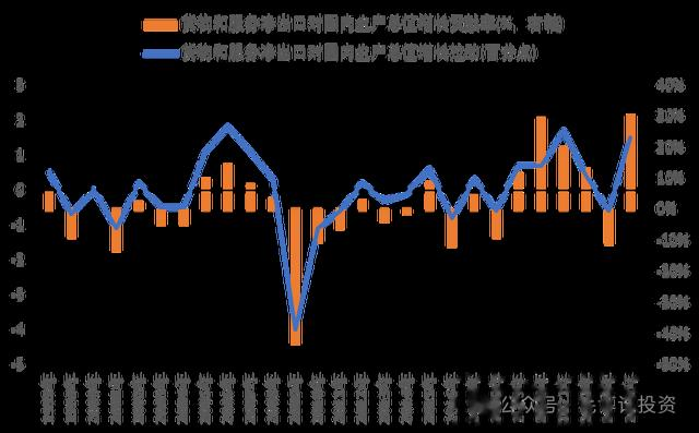 增长严重依赖出口。2024年,中国货物和服务净出口拉动国内生产总值增长1.5个百分点,对国内生产总值增长贡献率达到30%,为1998年以来最高值,甚至高于疫情冲击最严重的2020年。