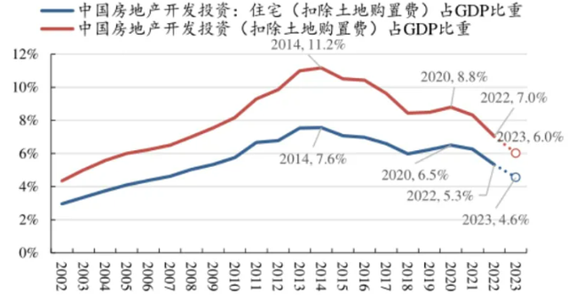 中国住宅投资仍将下行。中国住宅投资占GDP比重2014年达到7.6%,2024年降至4.2%,仍高于美国、日本的正常年份。而美国2005年住宅投资占GDP比重为6.6%,泡沫破裂后2011年降至2.4%,2024年为4.06%。日本私人住宅投资占GDP比重于50年代到70年代初持续提升,最高超9%,1990年降至6%,泡沫破裂后持续下行,2010年降至2.7%,2022年回升至3.3%。假设中国住宅投资占GDP比重不会经历美国的经济危机式超调,而是类似日本降至2.7%触底,则中国住宅投资额仍需下降36%。如果降幅维持在10%左右,则住宅投资需要到2027年触底。