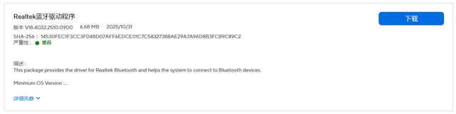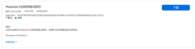 在下载页面中,先选择你当前使用的系统版本,下方会列出可用的驱动程序,每个驱动都会有对应的描述。